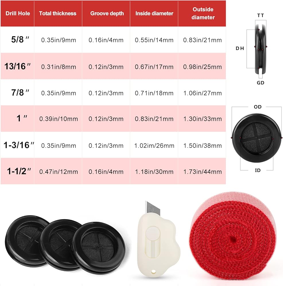 - 🛒المقاس: حلقة مطاطية: فتحة ثقب 1 بوصة، شريط لاصق للكابل: الطول: 59 بوصة