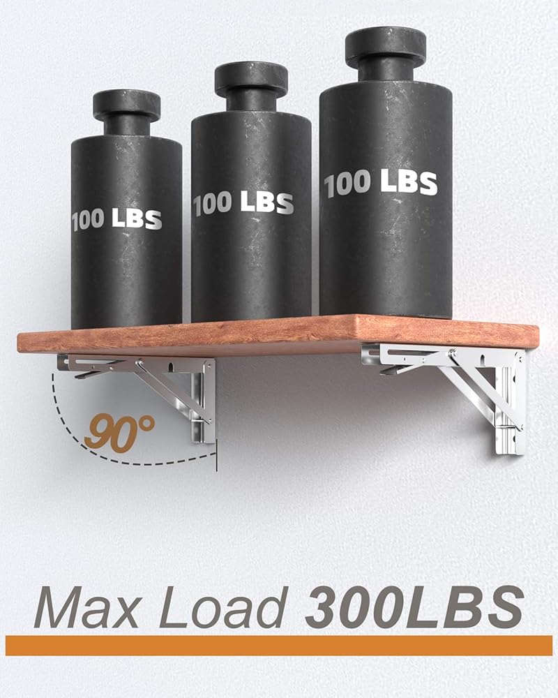 دعامات مثلثة مقاس 12 بوصة: دعامات رف قابلة للطي مصممة لدعم اللوحات بعرض 12 إلى 14 بوصة. يحمل كل زوج ما يصل إلى 300 رطل، مما يجعله مثاليًا لمختلف التطبيقات شديدة التحمل.
