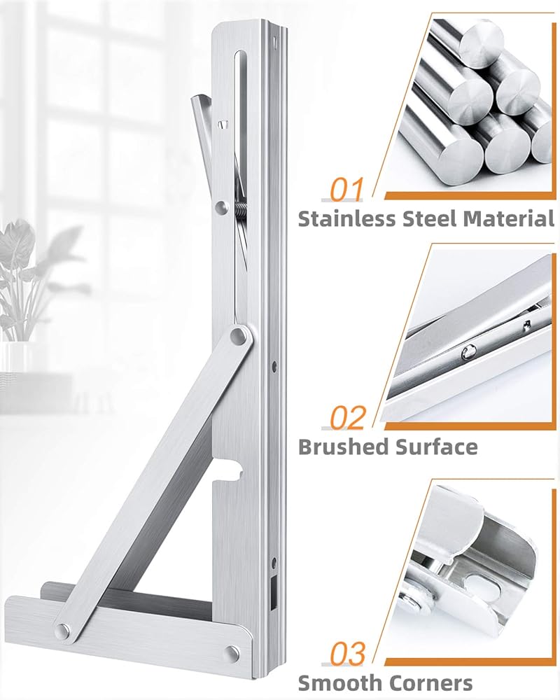 مادة مقاومة للصدأ: دعامات أرفف قابلة للطي مقاس 12 بوصة مصنوعة من الفولاذ المقاوم للصدأ عالي الجودة مع لمسة نهائية مصقولة لمقاومة فائقة للتآكل والخدش. مثالية للاستخدام الداخلي والخارجي.