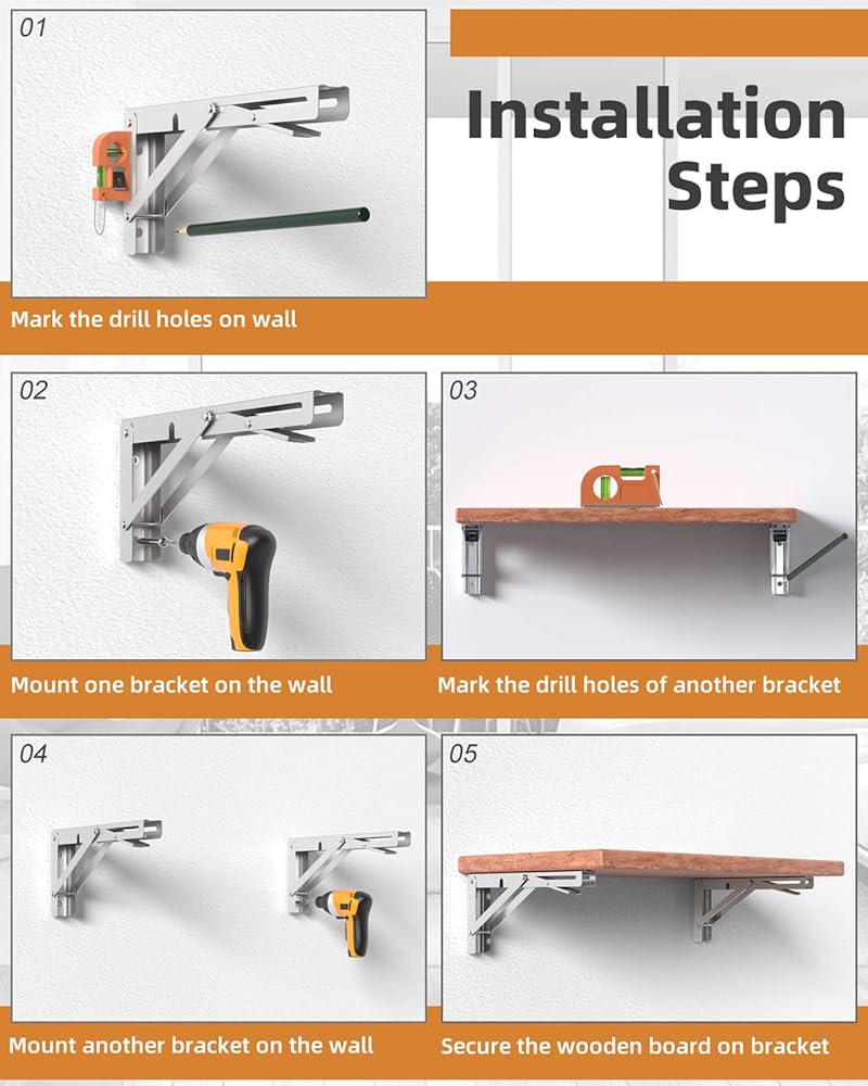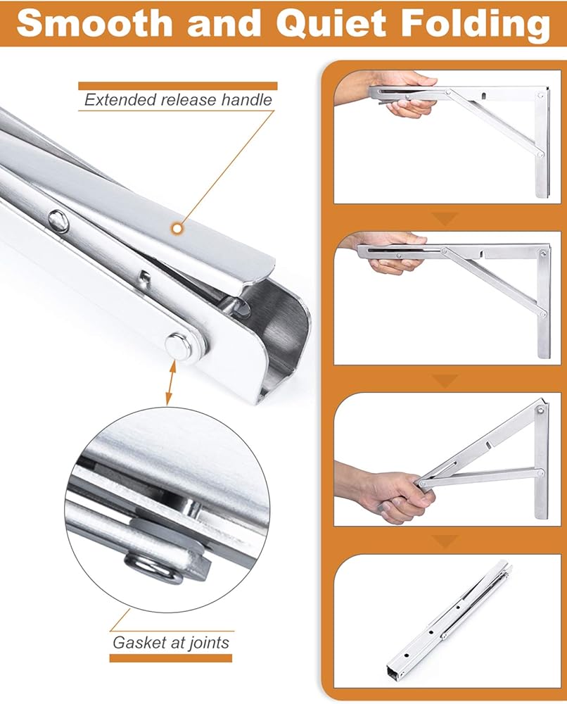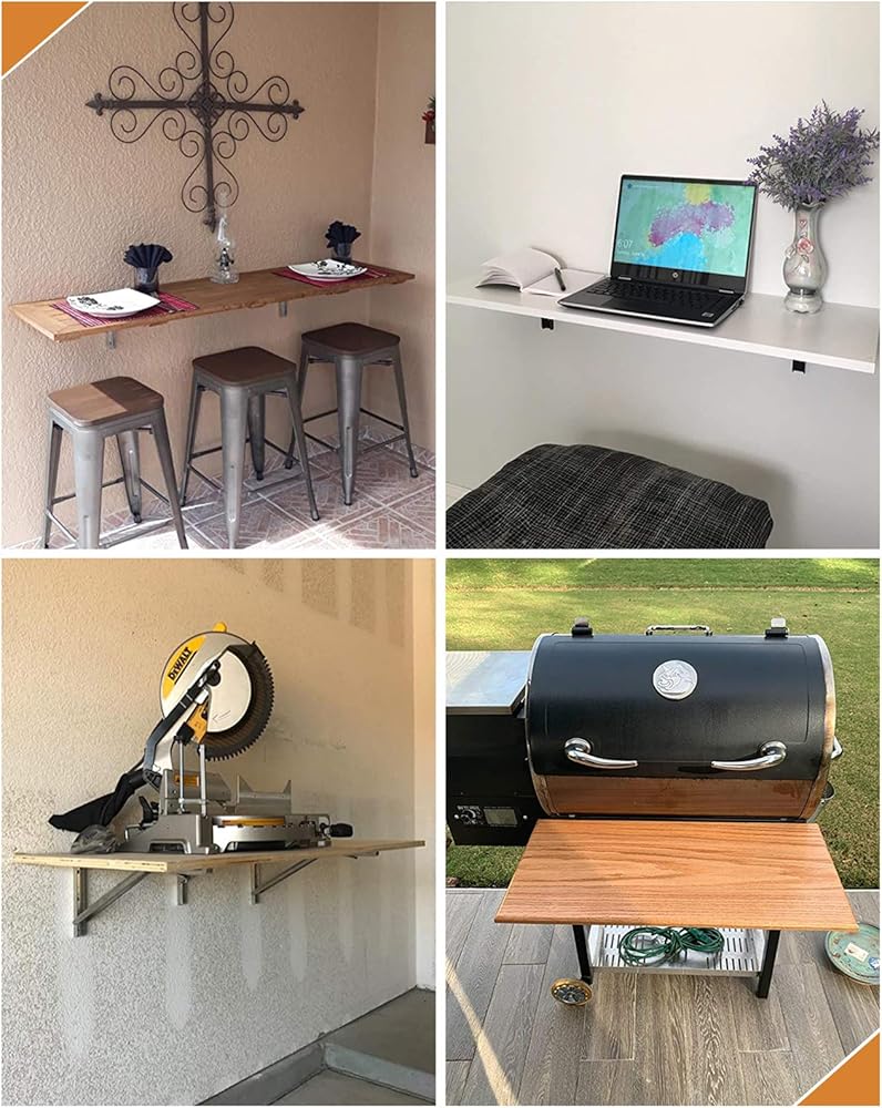 توفير المساحة: مثالي لإنشاء منضدة عمل في المرآب الخاص بك، أو إضافة سطح عمل في عربة سكن متنقلة، أو تثبيت رف على المدخن الخاص بك. يمكن طيها بسهولة لزيادة المساحة الخاصة بك عند عدم الاستخدام.