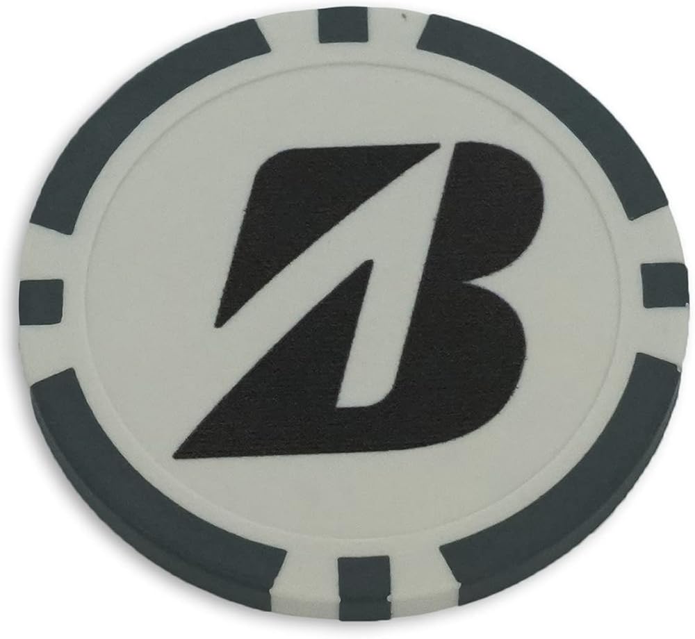 5 Bridgestone Golf branded golf tees, divot repair tool and poker chip ball marker