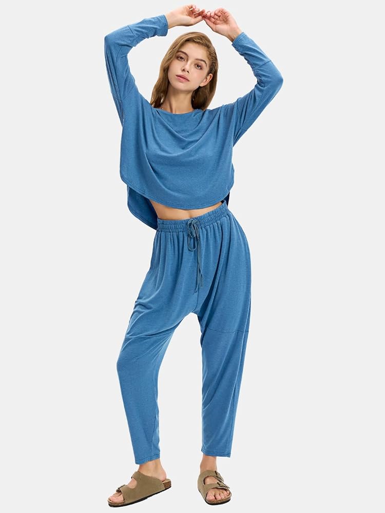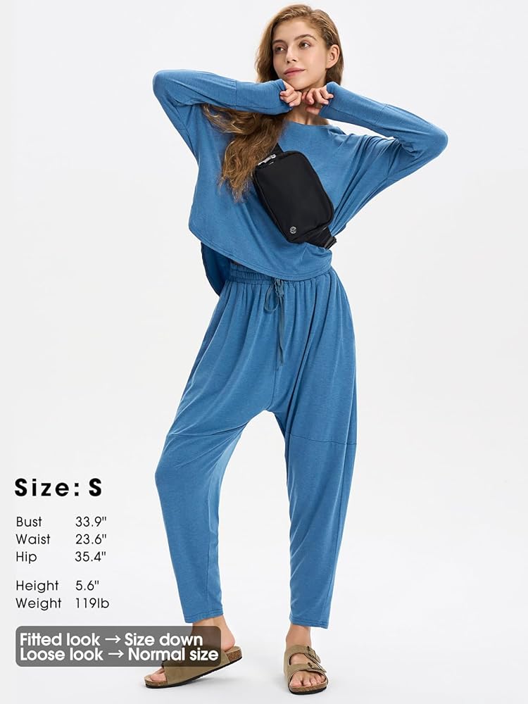 • مزيج مثالي من الراحة والأناقة: تجمع هذه المجموعة الكاجوال بين الراحة والأناقة بسلاسة. الجزء العلوي مناسب لجميع أنواع الجسم وله أسلوب فريد من نوعه. تشتمل كل مجموعة على بلوزة بأكمام طويلة ورقبة دائرية وبنطلون بحزام خصر مطاطي.