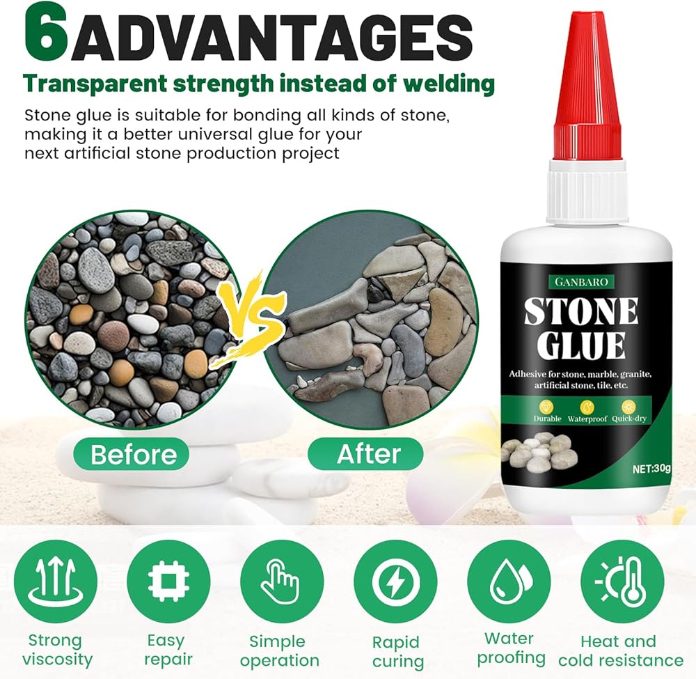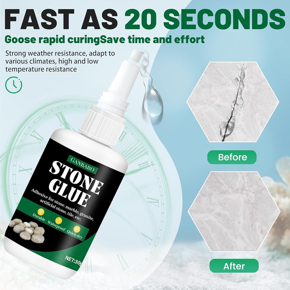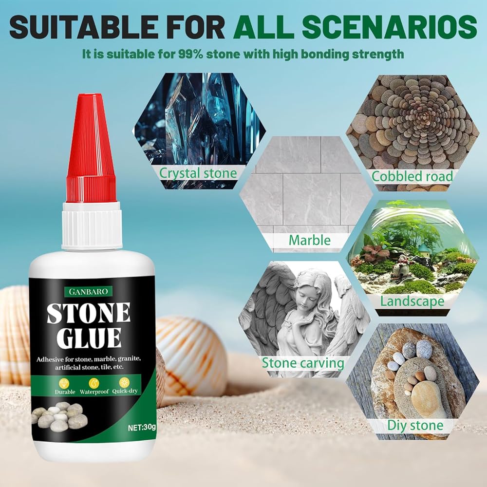 • Wide Application: Suitable for marble, ceramics, engineered stone, rubber, coral, wood, glass, and more, our stone g is perfect for bonding stone materials to other surfaces. Its transparent and waterproof formula ensures a strong and lasting bond