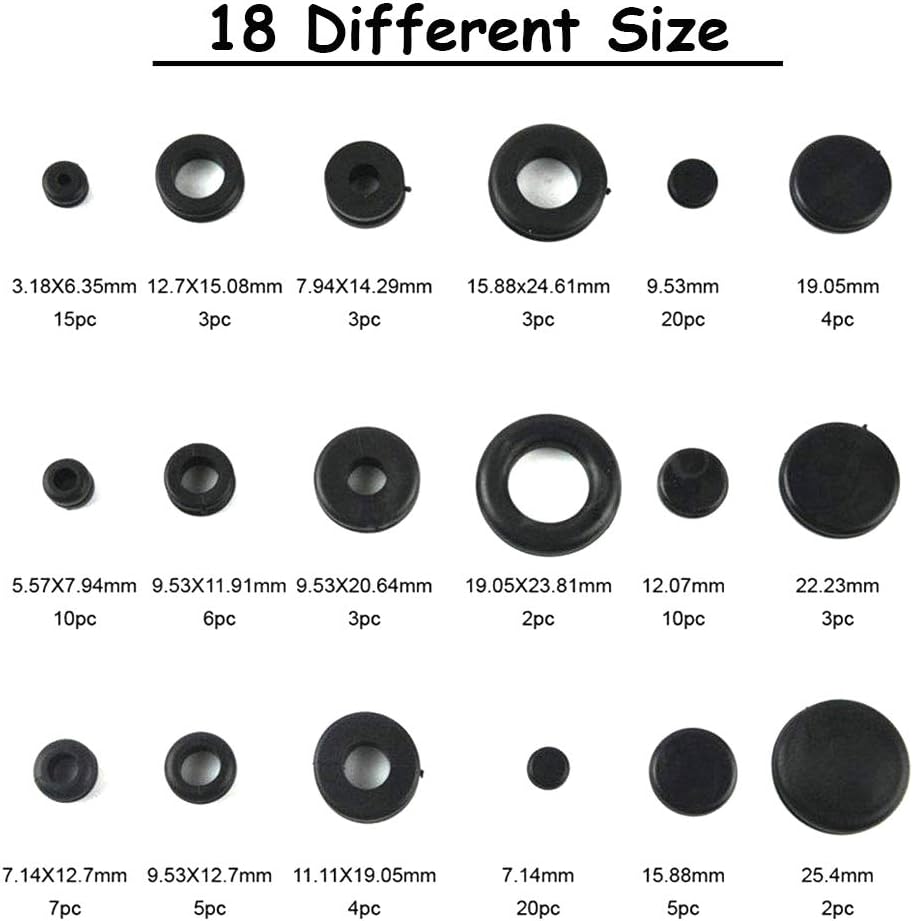 Bestgle 18 Different Sizes Black Rubber Grommets O-Ring Sealing Washer Kit