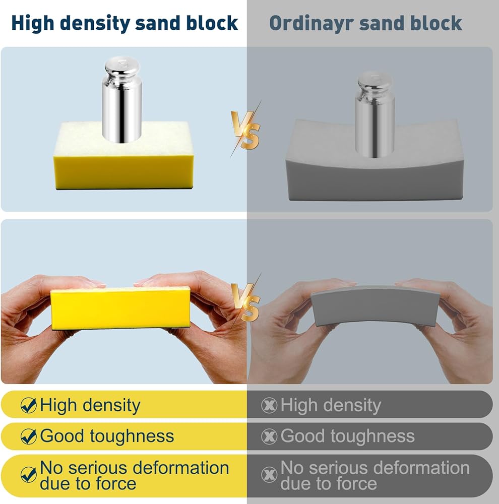 • متينة ومريحة: مصنوعة من مادة إسفنجية عالية الجودة، كتل الصنفرة هذه ناعمة ومتينة، ولا تتطلب أي أدوات أو معدات خاصة للبدء، مما يجعلها خيارًا فعالاً من حيث التكلفة لأولئك الذين يحتاجون إلى صنفرة متكررة.