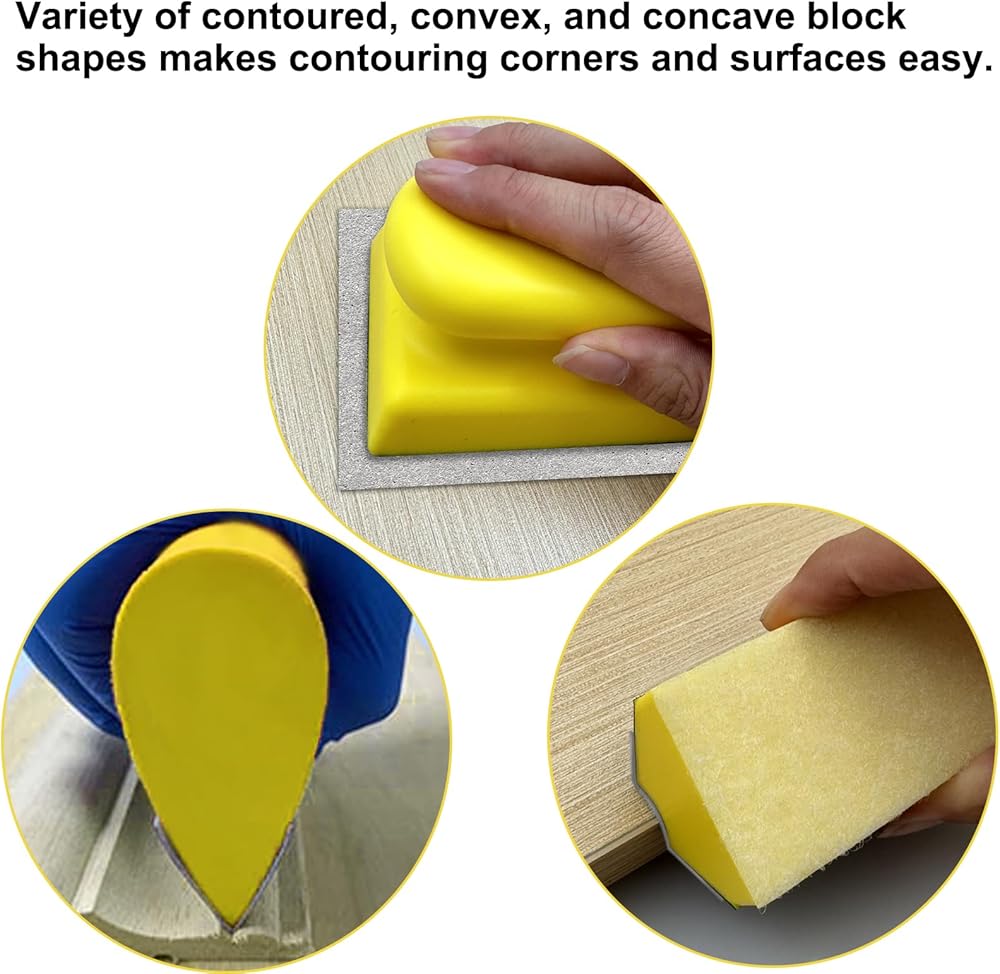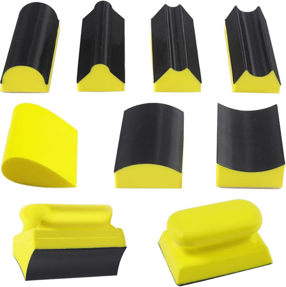 مجموعة قوالب الصنفرة اليدوية المكونة من 9 قطع، كتلة صنفرة يدوية من مادة إسفنجية بخطاف وحلقة، أشكال محدبة ومقعرة متنوعة قابلة للتبديل، للخشب وإصلاح هياكل السيارات والطلاء والأثاث