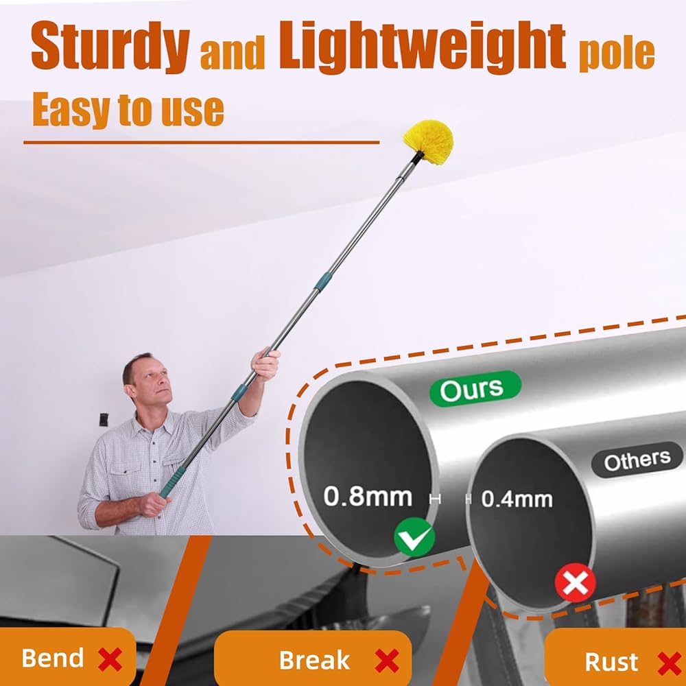 شعيرات قوية ورقيقة تمسك بكل شيء: شعيراتنا القوية والناعمة تجذب وتحبس الغبار وأنسجة العنكبوت مثل المغناطيس، مما يجعل تنظيفك سريعًا وفعالًا في كل مرة.