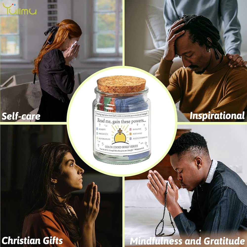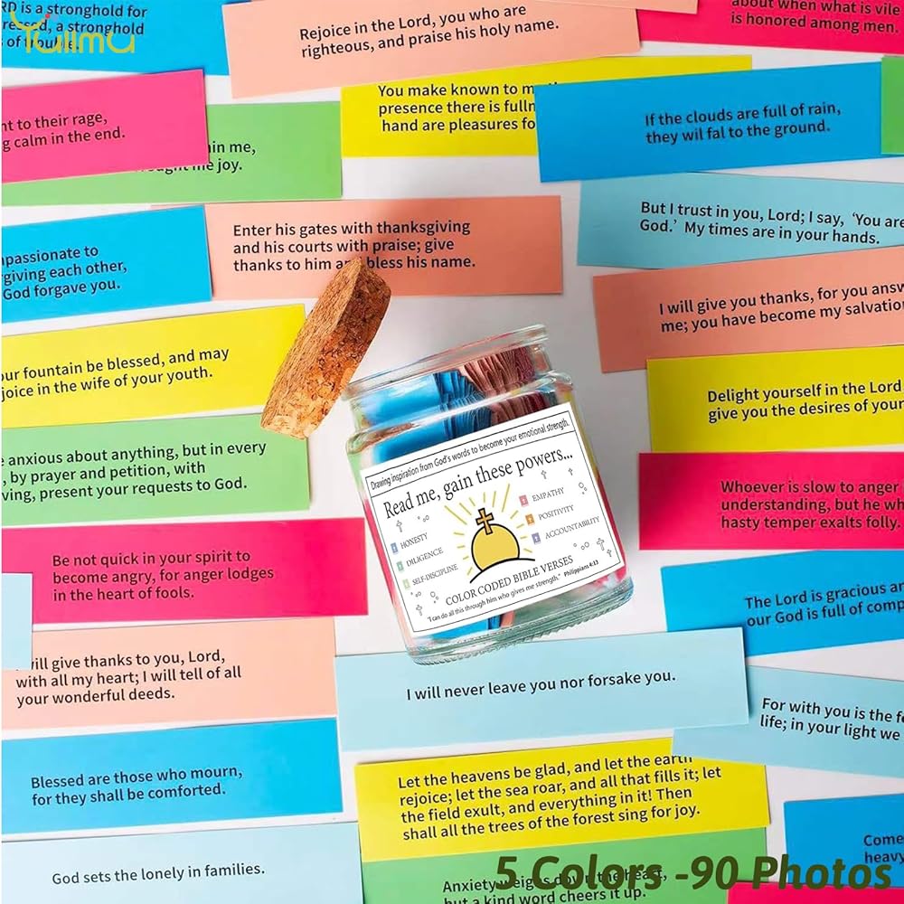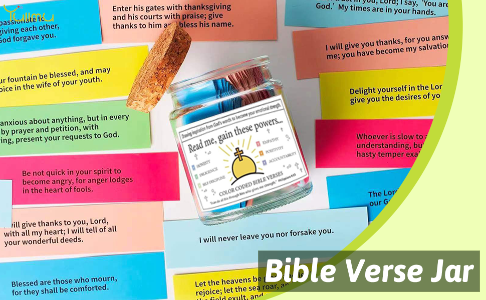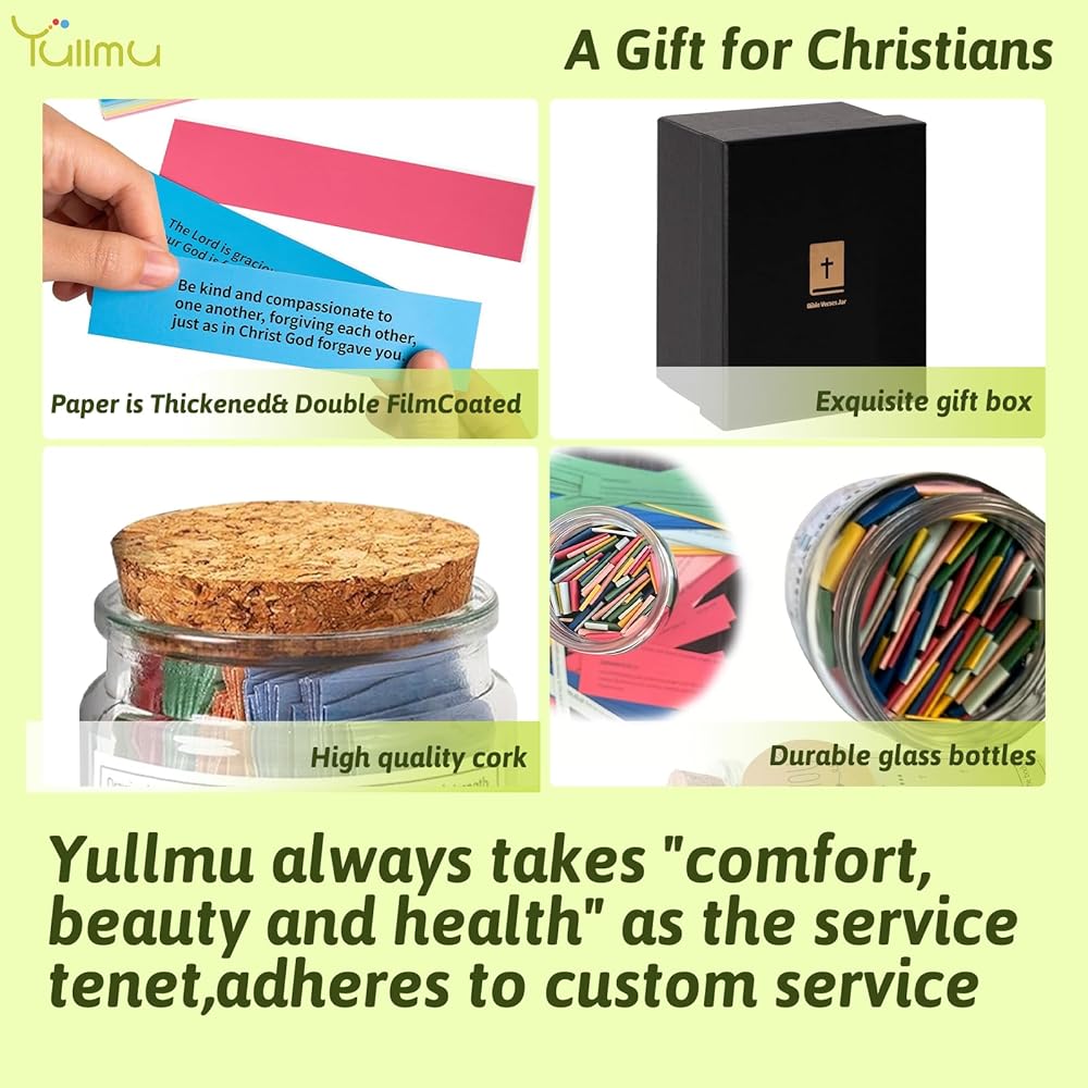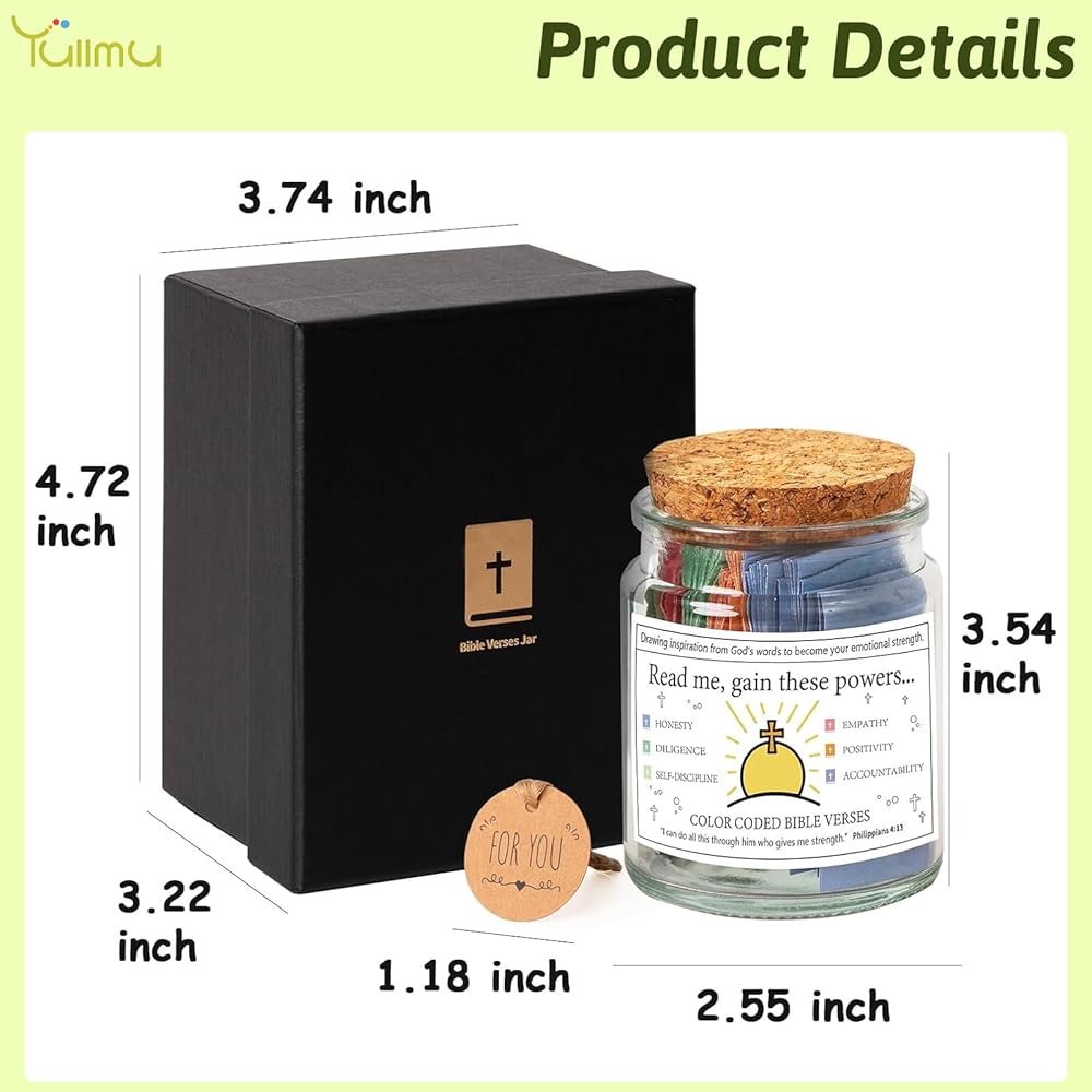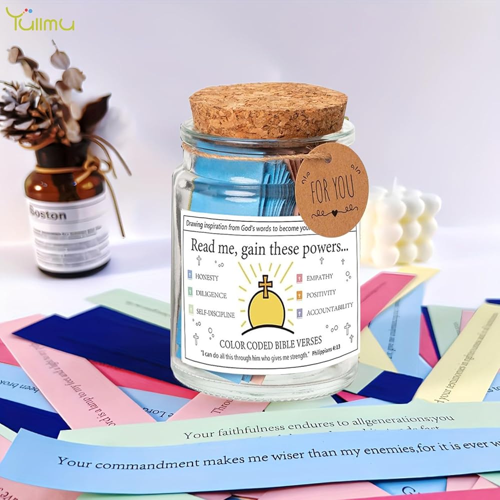 [قابلة لإعادة الاستخدام] البرطمانات الخاصة بنا مصنوعة من زجاج متين ويمكن إعادة استخدامها لفترة طويلة. تتم طباعة الكتب المقدسة على ورق عالي الجودة ومغلفة لضمان عدم ضبابيتها لفترة طويلة