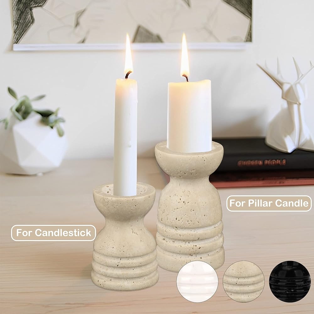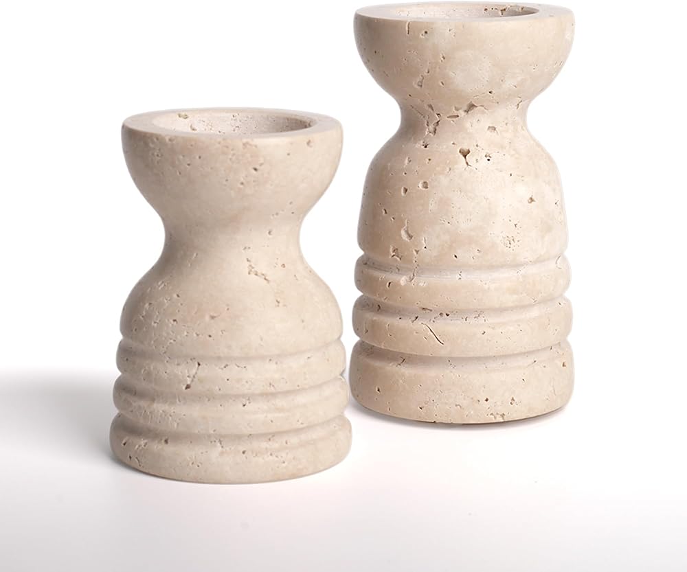Natural Marble: This candle holder is made from Travertine Natural Solid Marble, which gives a heavy duty, are sturdy, stable for supporting candles. We don't fill the tiny holes on the surface of travertine pieces in order to keep a naturally prime look