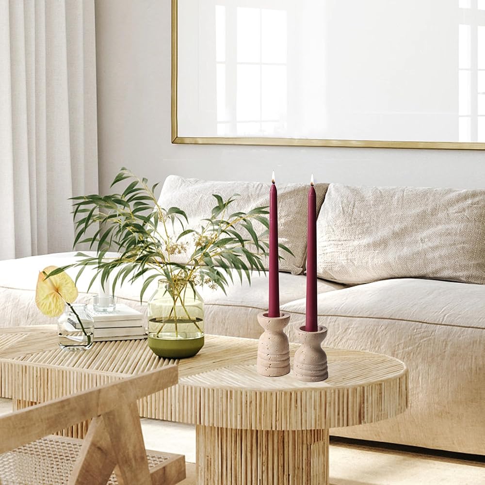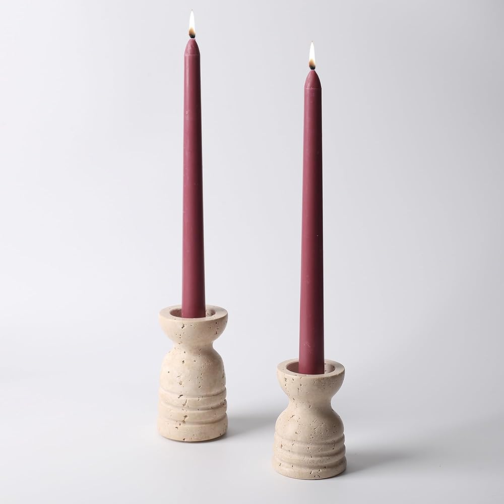 WORHE Candle Holders Set of 2 Travertine Stone Tapered Candlestick Holders for Taper Candles Modern Candle Holder Candle Sticks Holder Decor for Wedding Dinning Party Candle Stand Candles Color Red