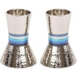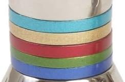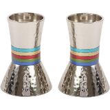 • LIGHT YOUR CANDLES IN STYLE! COLORED RING ACCENTS. Candlesticks have colored rings that add a unique twist to these cool candle holders. They will add grace and splendor to the Shabbos or yom tov.