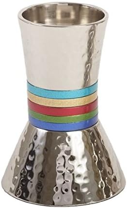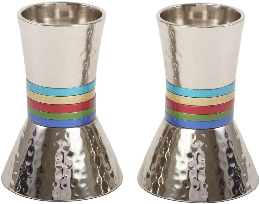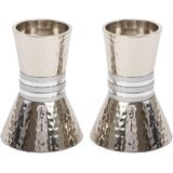 This beautiful Yair Emanuel set of hammered candlesticks is a spectacular addition to any Jewish home. Featuring a hammerd metal body, replete with sophisticated red toned rings around the top and base of the candlestick, this fabulous pair are a perfect gift for Shabbos, Jewish holidays, or any occasion.