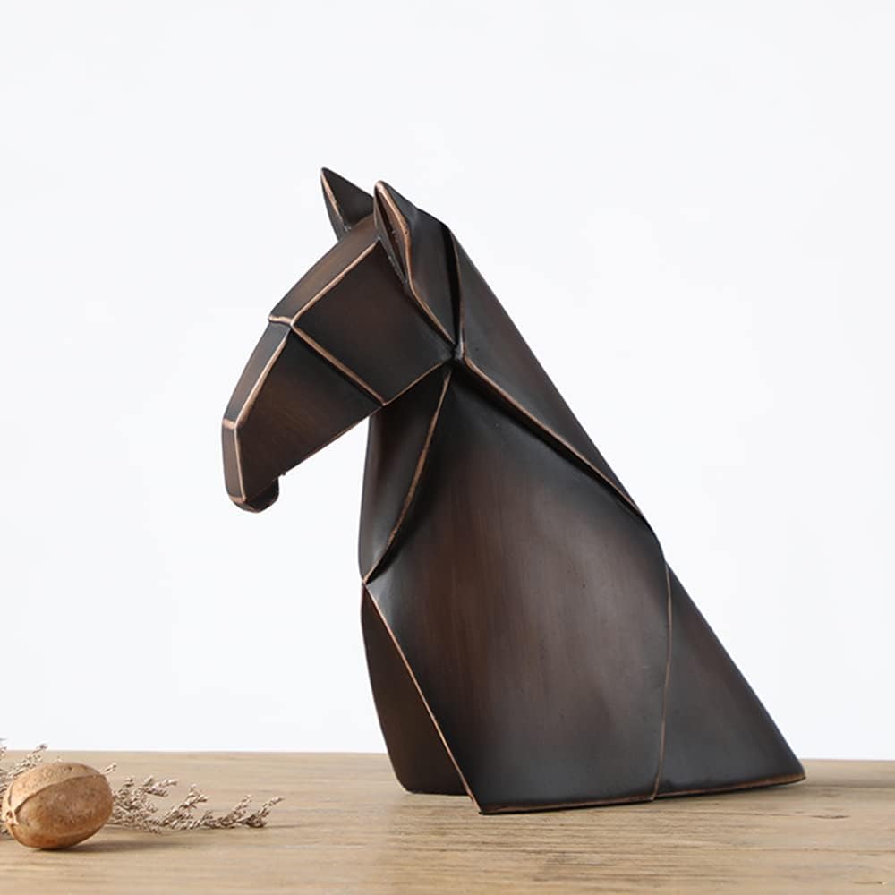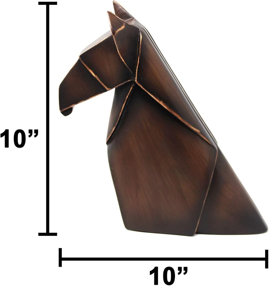 Decorative geometric horse statue. Set of 2. Great home decor piece for bookshelves. Made of durable polyresin. Large measures 12.75" tall. Weight: 3 pounds. Small measures 10" tall. Weight: 2.15 pounds. Makes a great give for any horse lover!