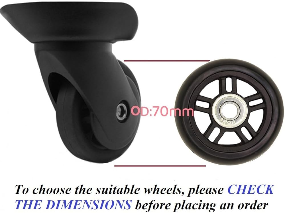 Before making order, Please compare the size of the new Wheels with the old wheels which you have.These Replacement Wheels are the same for front and rear.If you are not satisfied with the Luggage Wheels, 100% REIMBURSE.