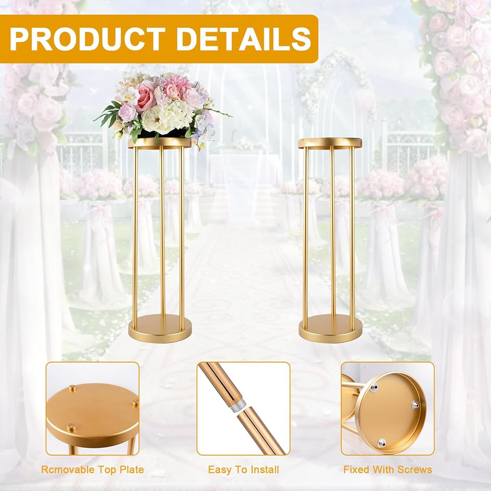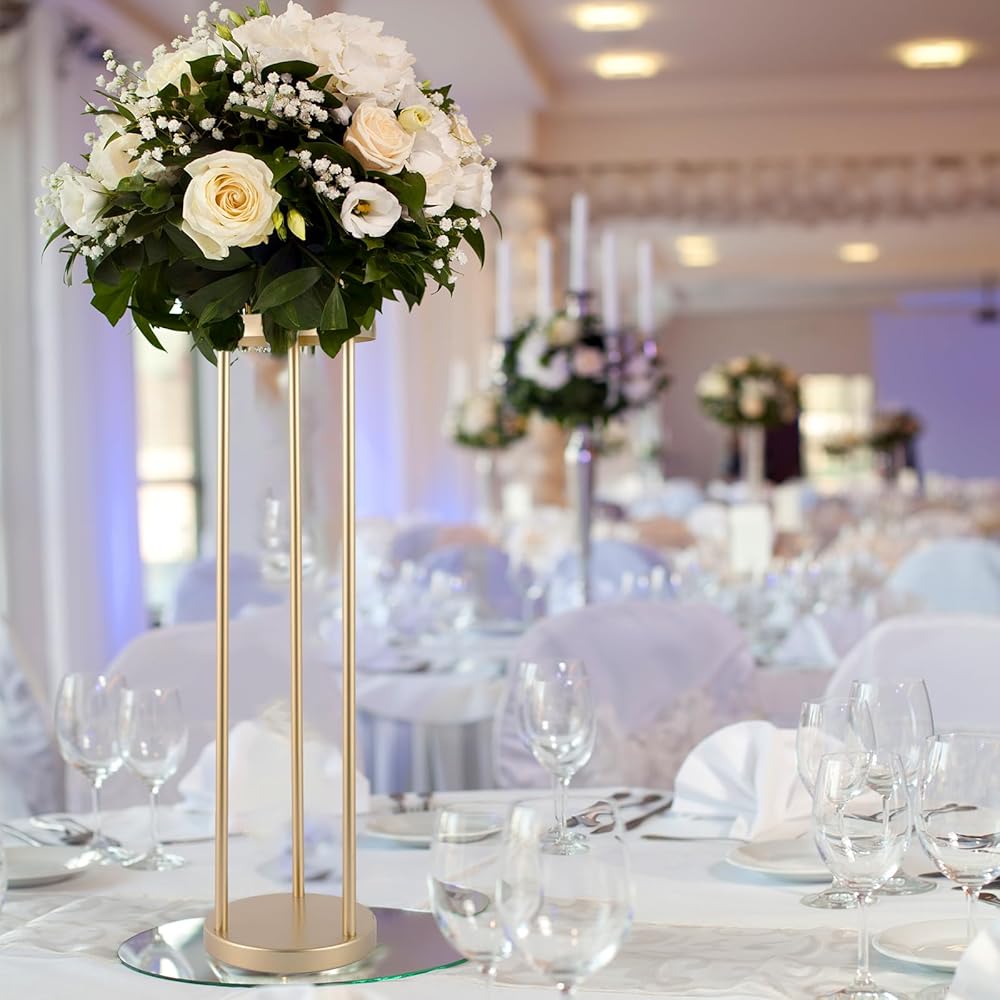 الحجم المناسب: تتميز مزهرية الزهور ذات العمود الذهبي بقاعدة دائرية ذهبية وأعلى، ويبلغ قطرها 7.87 بوصة/20 سم، ويبلغ ارتفاع العمود المعدني حوالي 31.5 بوصة/80 سم. الحجم الصحيح يجعل من السهل أن تصبح عينًا اصطياد نقطة محورية.