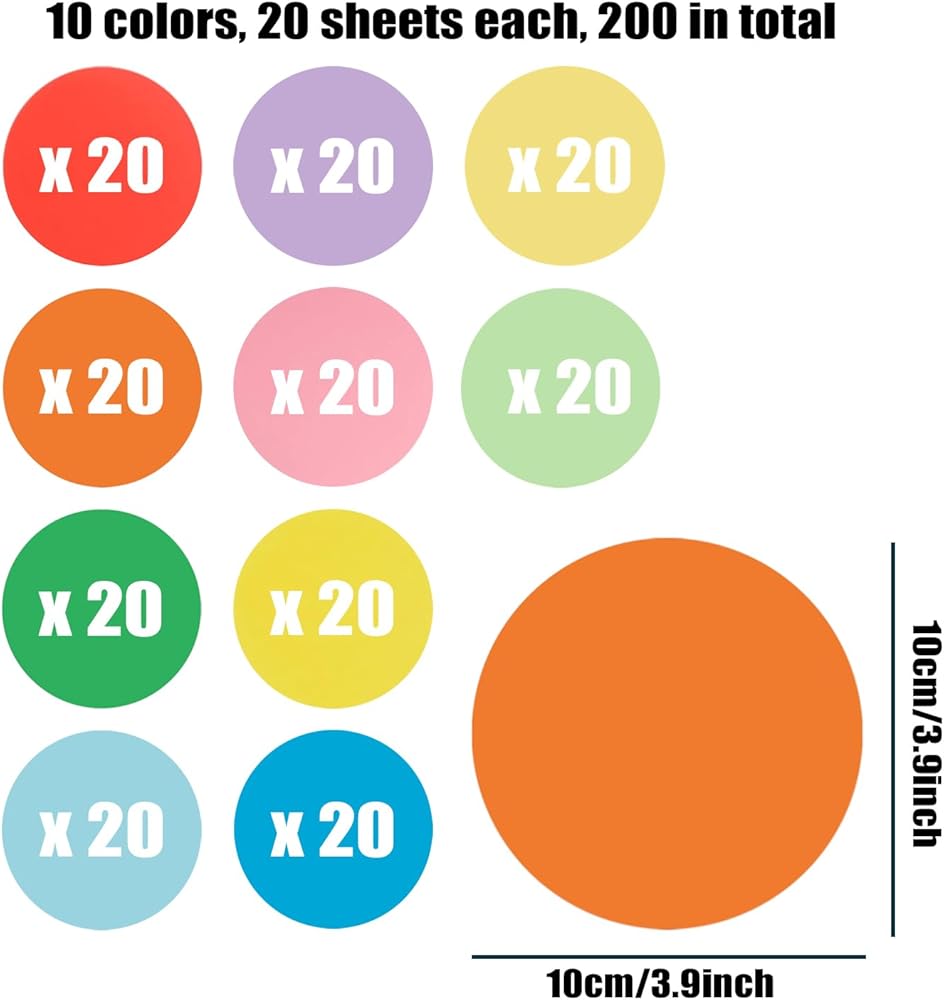 200 قطعة من الورق الدائري مقاس 3.9 بوصة، ودوائر ورقية دائرية مقاس 3.9 بوصة، ورق بناء بألوان متنوعة لمشاريع DIY لتزيين الفصل الدراسي، ورق لوحة الإعلانات (3.9 بوصة)