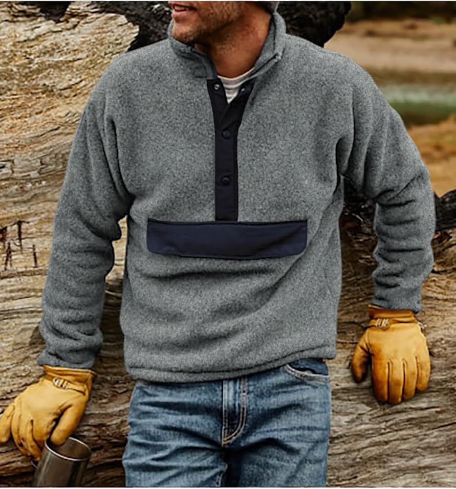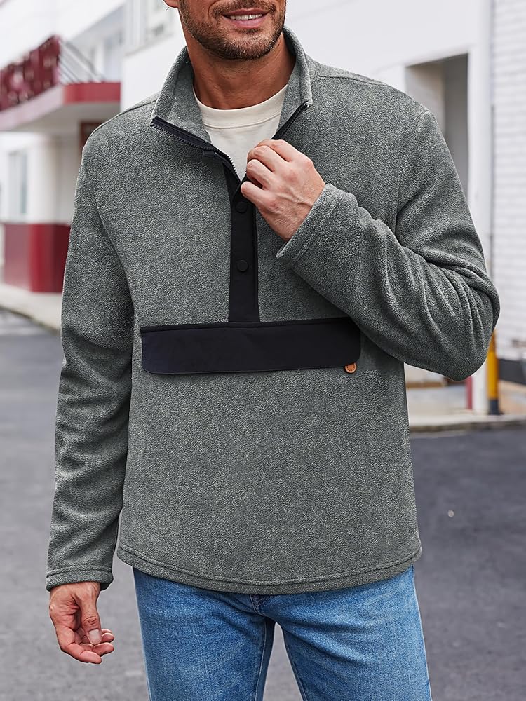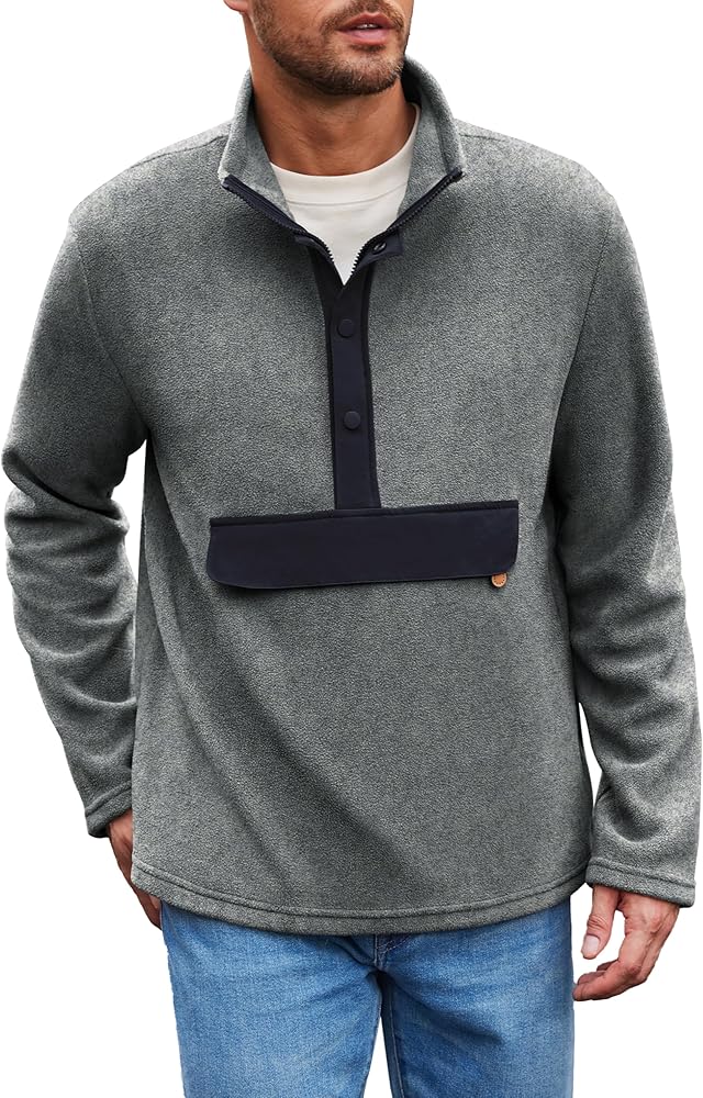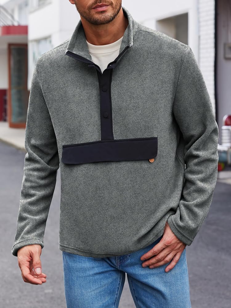تصميم فريد: سويت شيرت للرجال، كم طويل، رقبة وهمية، ياقة واقفة، ألوان متباينة، زر إغلاق بالإطباق. تصميم كتلة الألوان البسيط والكلاسيكي يجعله لا يصبح قديم الطراز أبدًا.