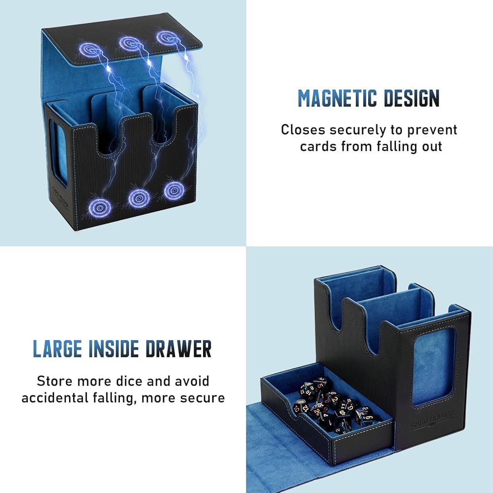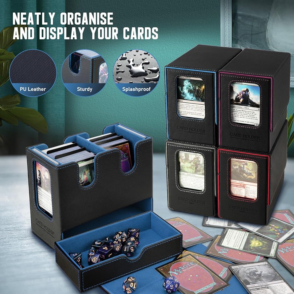 • حماية قوية، تنظيم سهل: حافظة البطاقات السحرية مصنوعة من جلد البولي يوريثان الفاخر للحماية من الصدمات والغبار وبطانة ناعمة من الألياف الدقيقة لحماية البطاقات من الخدوش. مع أقسام مزدوجة، يضمن صندوق بطاقات mtg فرز البطاقات بشكل منظم ومحمي بالكامل. 6 فواصل متضمنة تسمح لك بتقسيم البطاقات إلى أقسام مختلفة لتصنيف مجموعات بطاقتك.