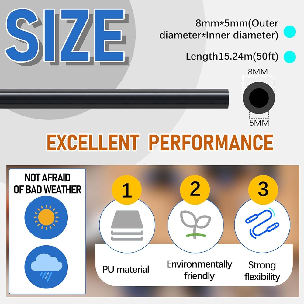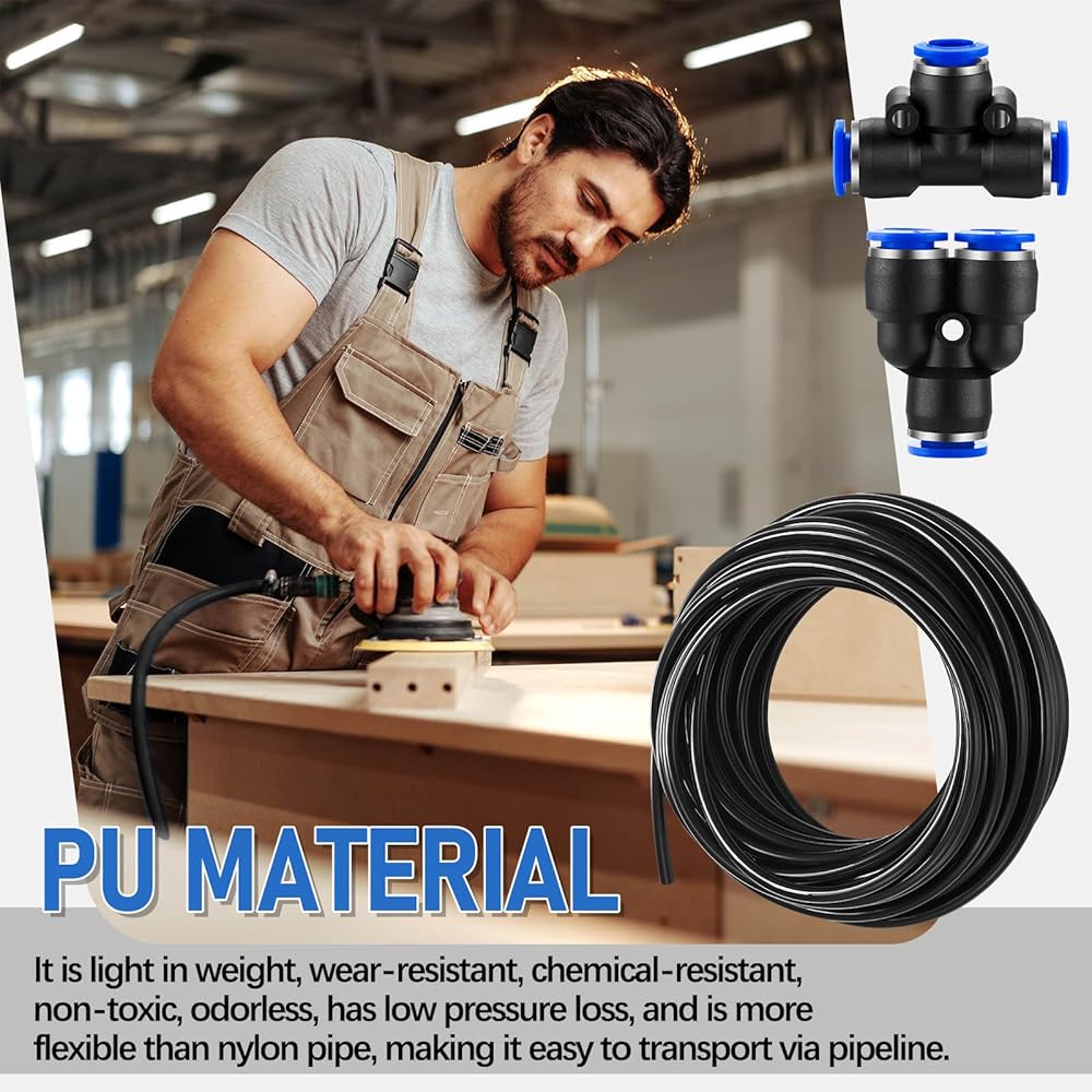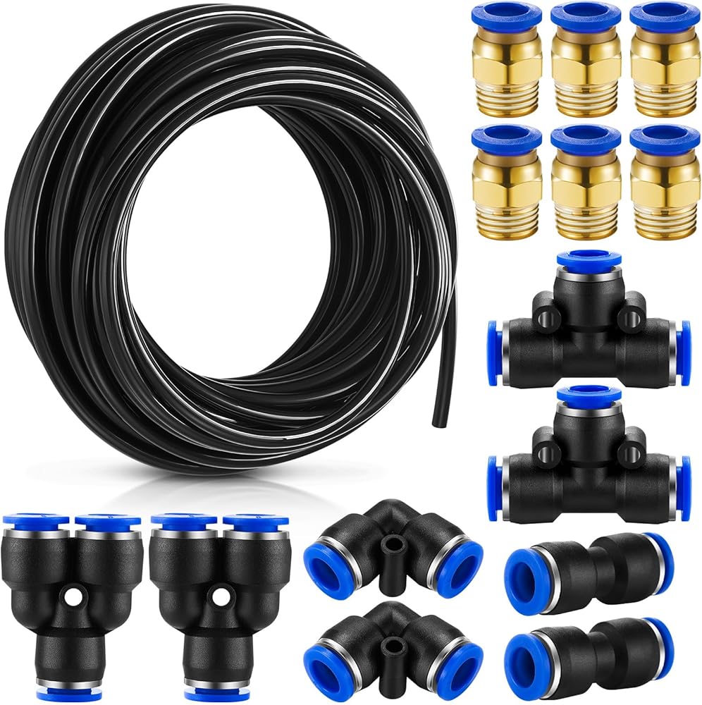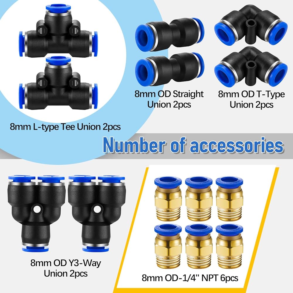 Our package includes 1 roll pneumatic tubing, and suitable for 8mm outer diameter and 5mm inner diameter pneumatic tube accessories: 6 copper connectors, 2 Y-type tees, 2 two-way connectors, 2 T-type air connectors, 2 L-type two-way connectors, meeting a variety of needs.