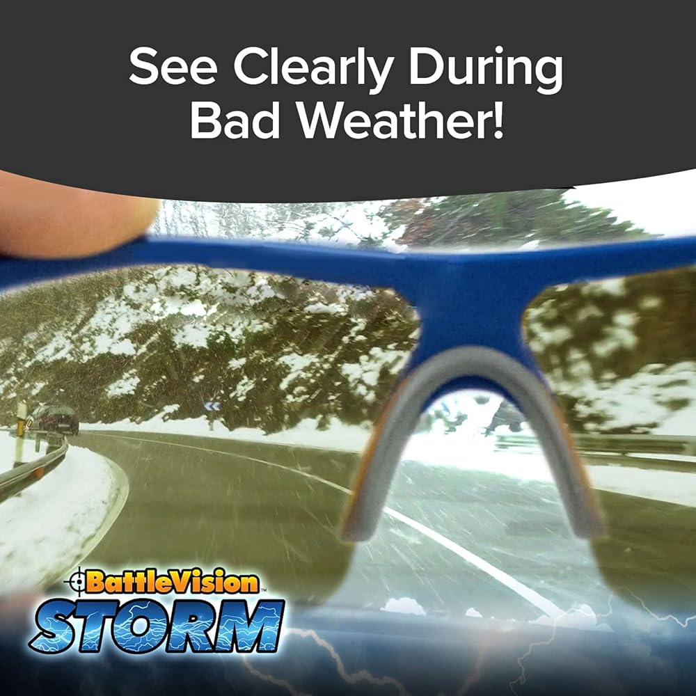 تخفيضات الوهج: Battle Vision Storm عبارة عن نظارات لتقليل الوهج تعمل بشكل فعال على قطع الوهج الذي تشاهده في الطقس السيئ مثل المطر والثلج والصقيع، وتسمح لك بالرؤية برؤية عالية الدقة. يمكنك أيضًا ارتدائها في الليالي الصافية لتقليل وهج الأضواء.