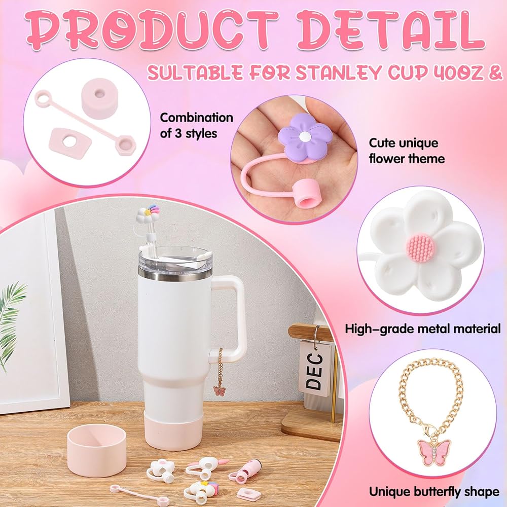 قائمة التعبئة: مجموعة إكسسوارات الأكواب الأرجوانية لستانلي تتضمن 5 قطع من أغطية المصاصة للستانلي، 9 قطع سدادة تسرب للستانلي، 2 قطعة واقي سفلي و2 قطعة ساحرة أرجوانية، مصممة خصيصًا لكوب ستانلي 30/40 أونصة.