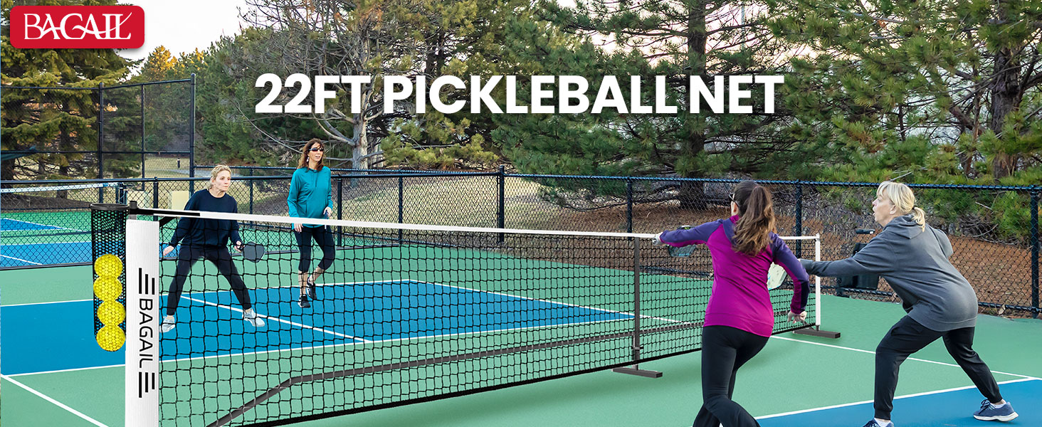 22FT Regulation Size: BAGAIL's latest portable pickleball net features full court size (36 "H x 22'W) that comply with USAPA regulations. You can play with family or friends anywhere - in your driveway or indoor court. Suitable for players of all ages and skill levels