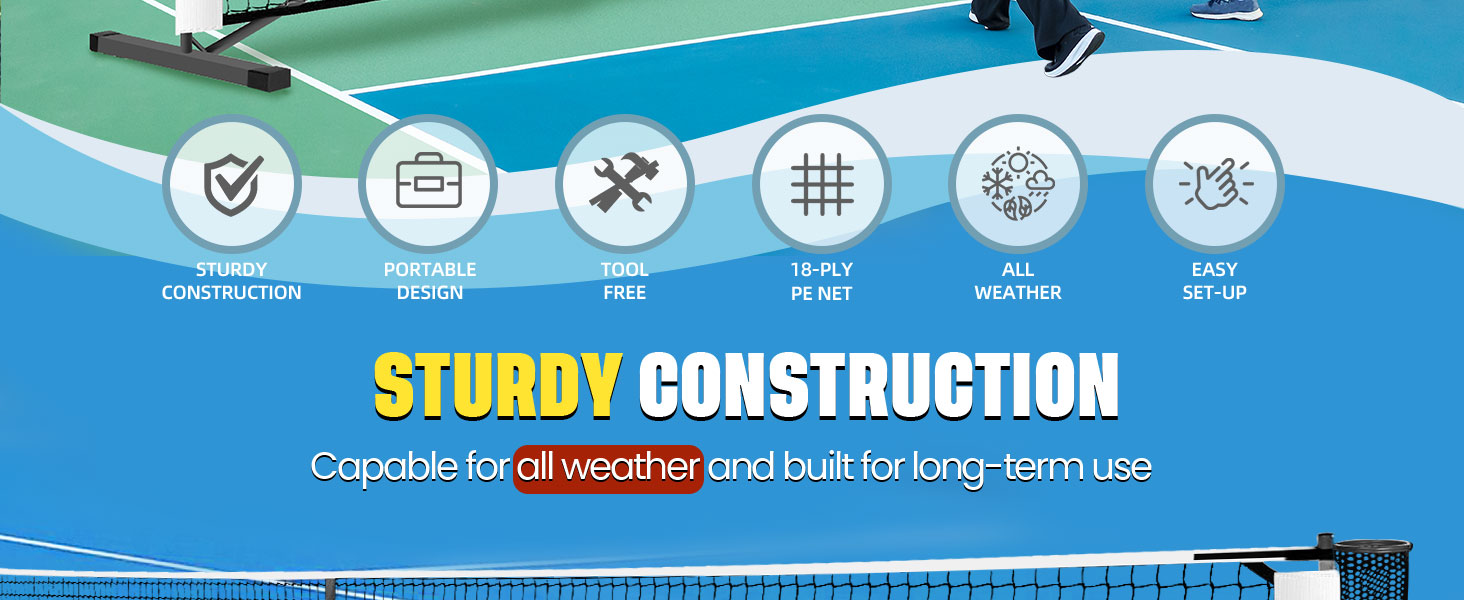 Effortless Assembly: No wrestling with complicated assemblies, you can bring the fun on your driveway in a breeze! Our pickleball net utilizes an user-friendly assembly system, with Push-Lock button design and straightforward instructions (each part is numbered), no additional tools are required - the net can be set up in just minutes by one person