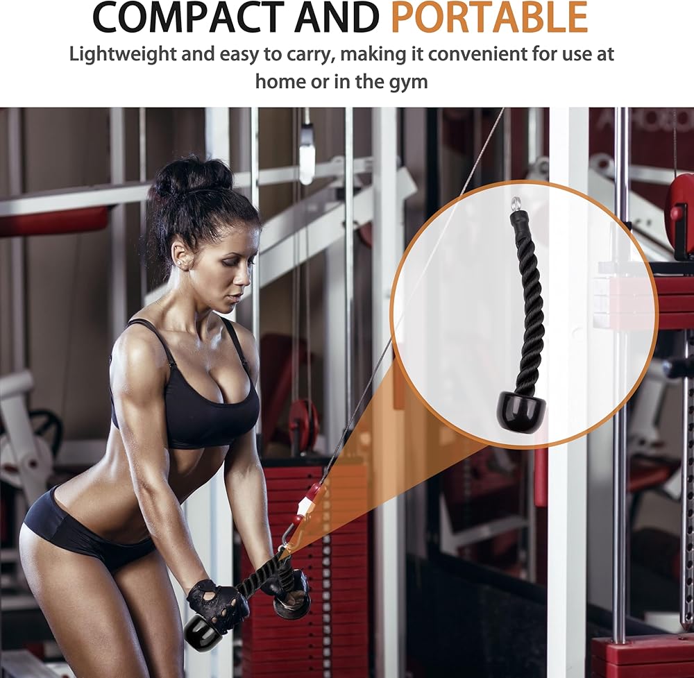 Versatile Exercise Equipment: Single grip triceps exercise equipment with a gym pulley exercise rope for pull-down exercises.