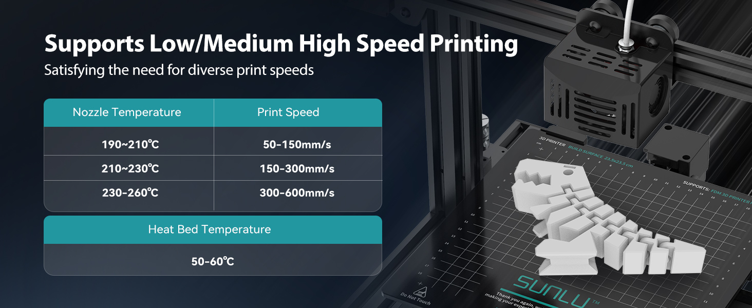 ⚡【SUNLU عالية السرعة PLA Plus】دقة الأبعاد +/- 0.02 مم. نظرًا لخطأ القطر الصغير ودعم الطباعة عالية السرعة 30-600 مم/ثانية، فإن خيوط SUNLU Hyper PLA تتمتع بنطاق واسع من التوافق لجميع طابعات FDM ثلاثية الأبعاد مقاس 1.75 مم تقريبًا. (بما في ذلك معظم الطابعات ثلاثية الأبعاد عالية السرعة)