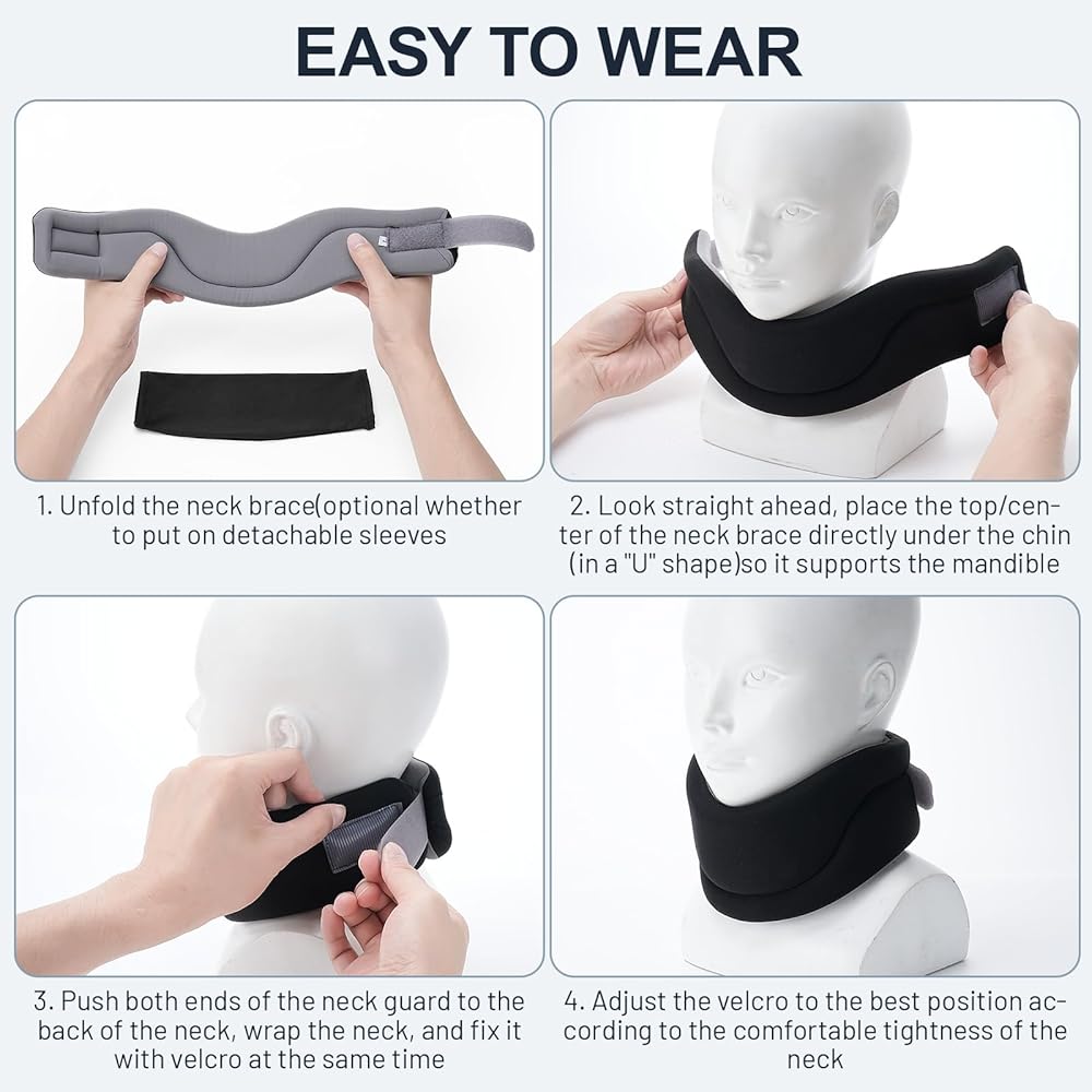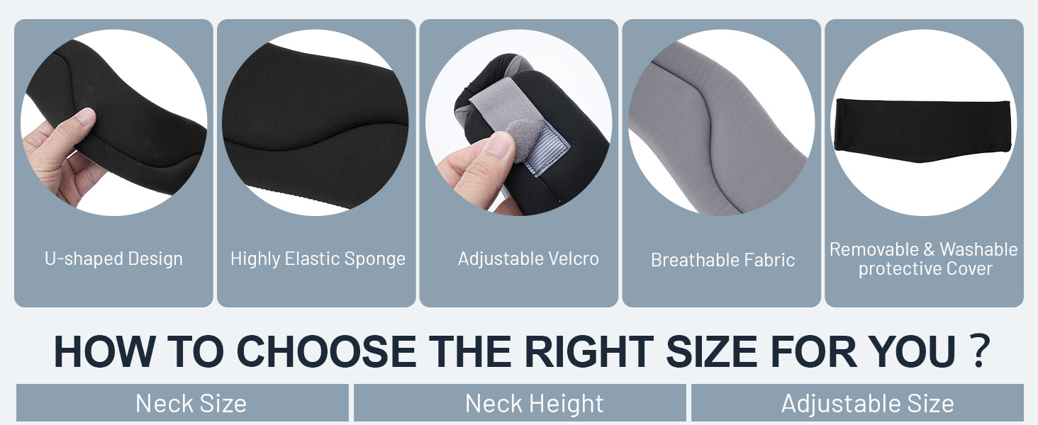 【مريح ومسامي】الجانب الداخلي من دعامات الرقبة الخاصة بنا مصنوع من إسفنجة إسفنجية ناعمة ومرنة للغاية، والطبقة الخارجية مصنوعة من نسيج نايلون ناعم ورقيق، مما يوفر تهوية جيدة وامتصاص العرق وخصائص صديقة للبشرة، حتى تتمكن من ذلك يظل مريحًا وجافًا أثناء الاستخدام، حتى لو تم ارتداؤه أيضًا أثناء النوم. بالإضافة إلى ذلك، نقدم غطاء قماشي إضافي قابل للإزالة لحماية دعامة دعم الرقبة وتسهيل عملية التنظيف.