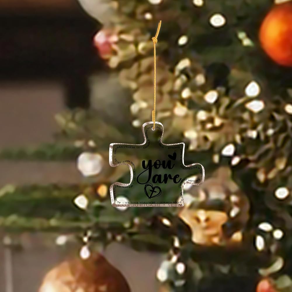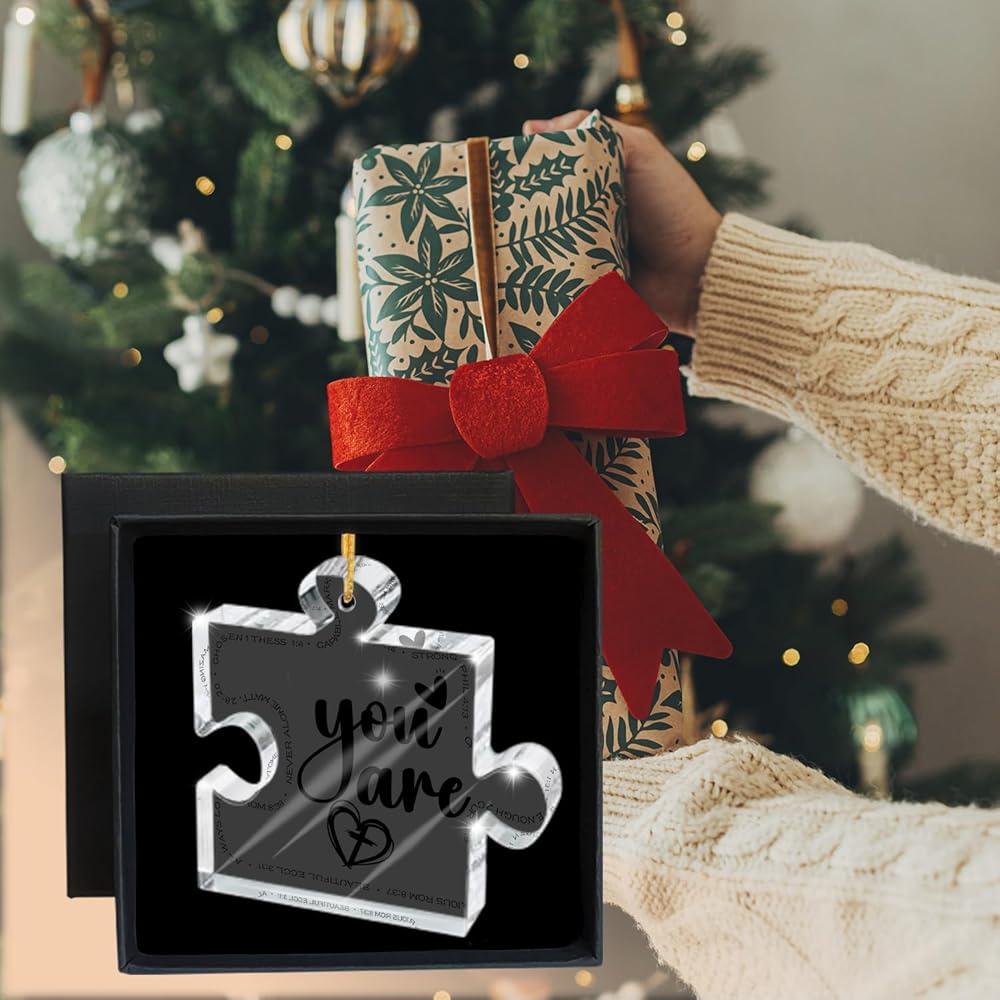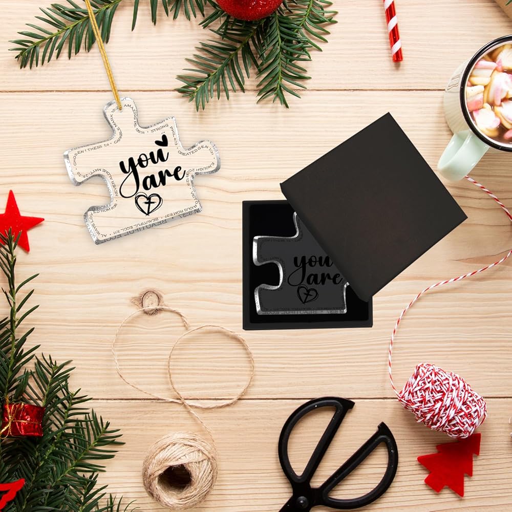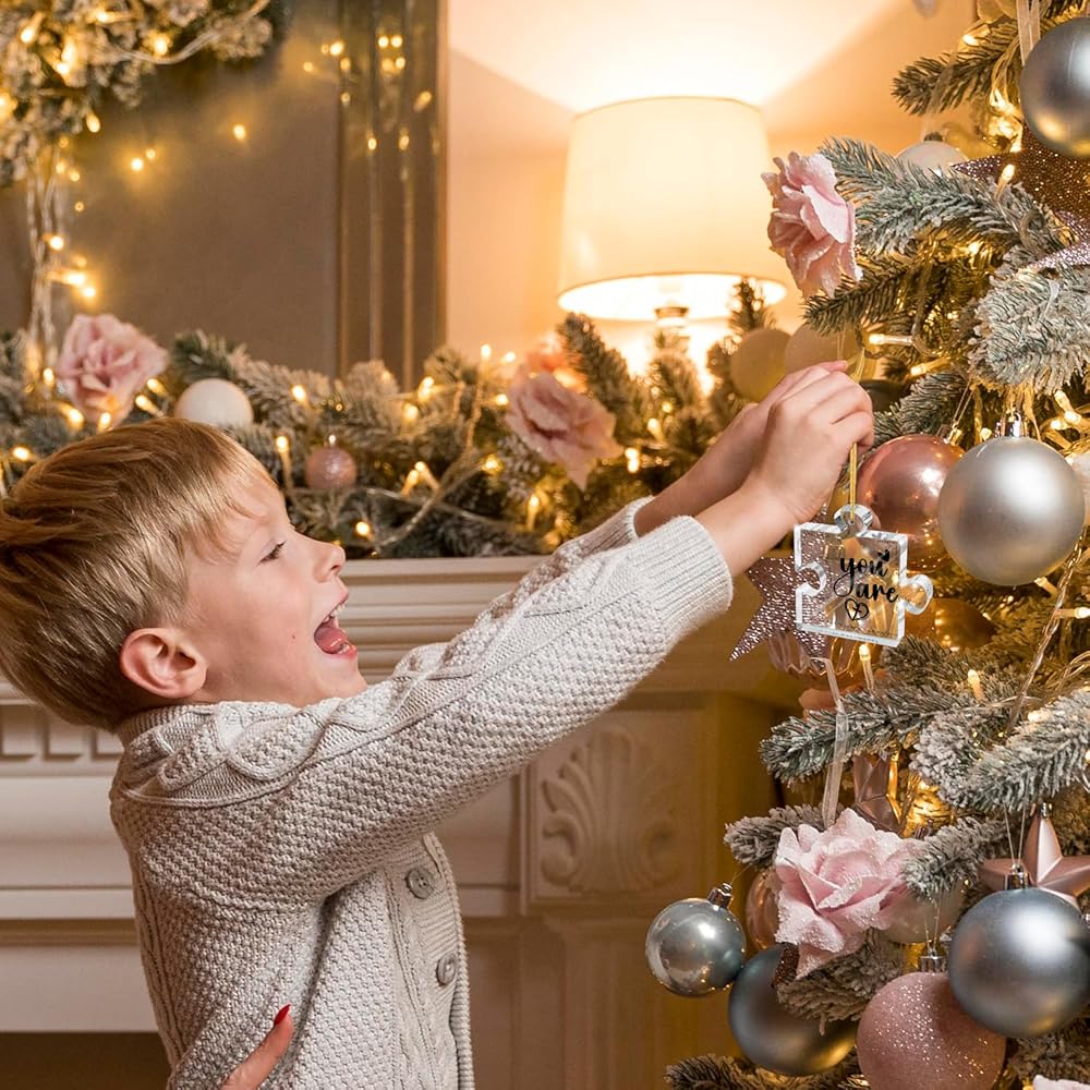 Perfect size - 3.1"x2.7x0.2" carved acrylic Ornament puzzle, light weight, with hanging rope, you can easily hang items, suitable thickness, you can also use it as a desktop decoration. The best decoration for your Christmas tree, doors, windows, walls and anywhere you want to decorate.
