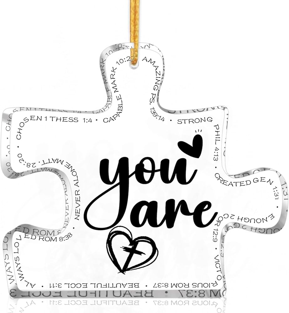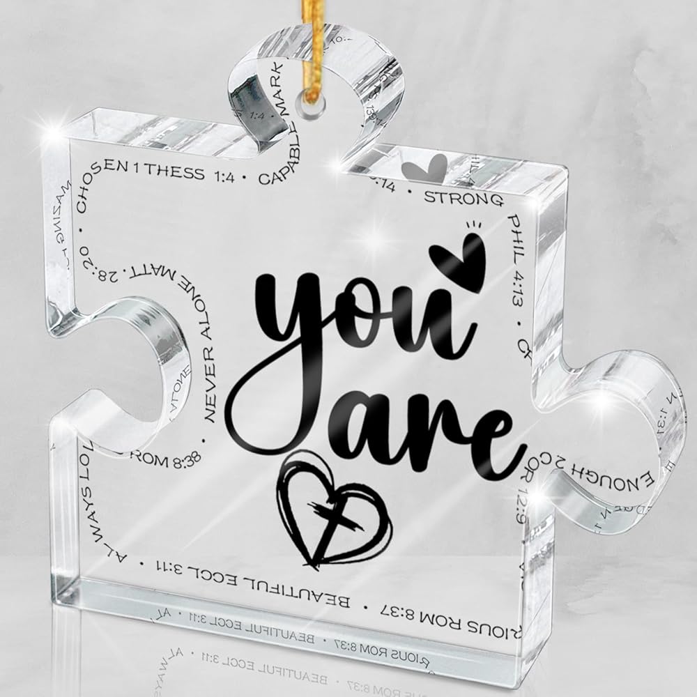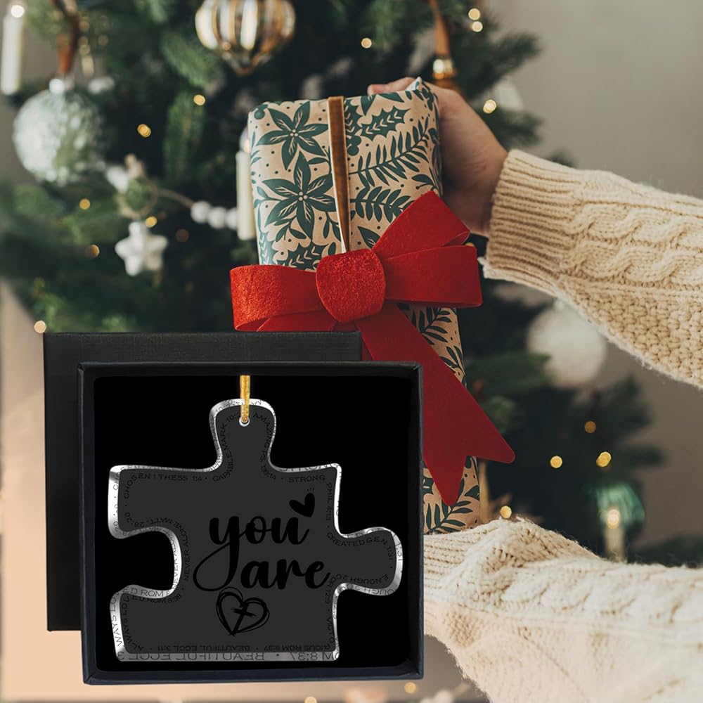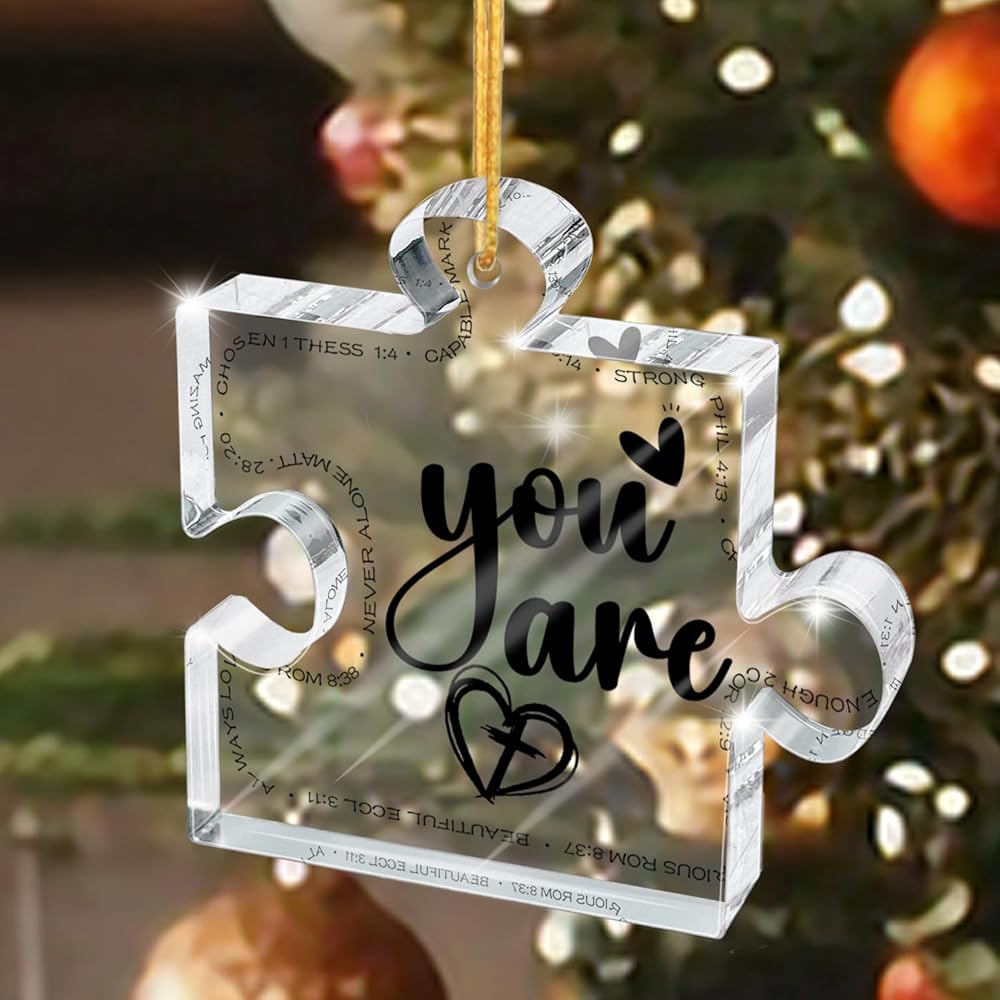 Perfect size - 3.1"x2.7x0.2" carved acrylic Ornament puzzle, light weight, with hanging rope, you can easily hang items, suitable thickness, you can also use it as a desktop decoration. The best decoration for your Christmas tree, doors, windows, walls and anywhere you want to decorate.