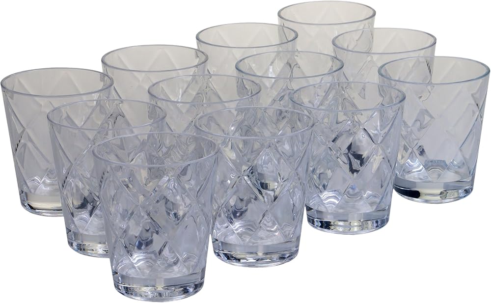 أدوات شرب أكريليك مزدوجة قديمة الطراز معتمدة دوليًا بوزن 15 أونصة (مجموعة من 12 قطعة)، شفافة