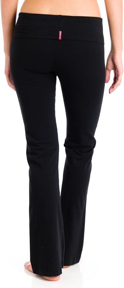 The original and classic Hard Tail Roll Down Yoga Pant that inspired so many others! This is one of our best-selling yoga pants EVER. Snug-fitting, adjustable fold over waist, fitted through the thigh with a bootcut bottom. Made from a pre-shrunk blend of cotton/lycra. Some people find these pants to run a bit on the small side, so we recommend ordering a size up if you're a between-sizes person. Hard Tail pants are the best! 90% cotton / 10% lycra. Available in black, mud brown, midnight, and charcoal.