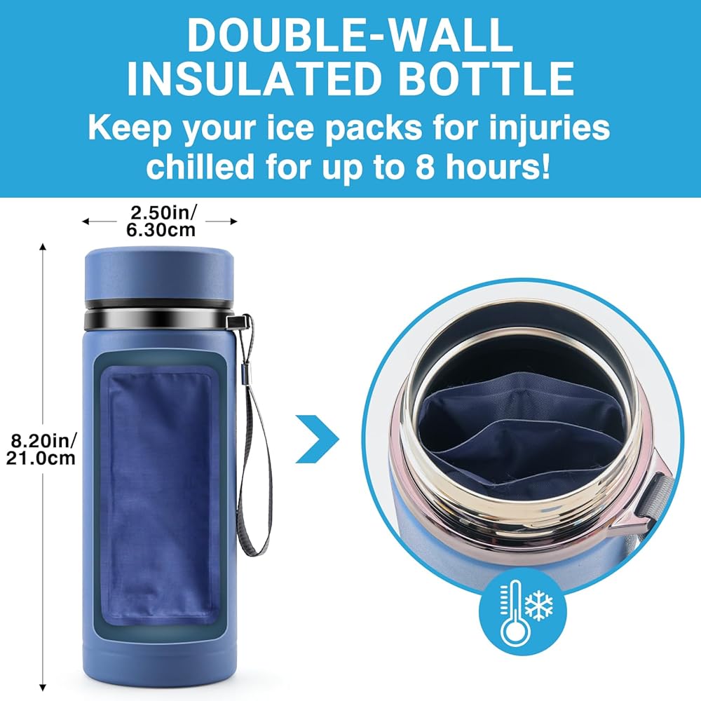 Experience the ultimate in cooling relief with our Cold Compress Reusable, designed for maximum comfort and effectiveness. Perfect for injuries, muscle strains, or post-surgery discomfort, this Soft Gel Ice Packs Reusable or Gel Pack Ice Pack Reusable alleviates pain and reduces swelling, providing soothing therapy for up to 6-8 hours after just 8-10 hours in the freezer. Paired with an insulated bottle featuring double-wall stainless steel insulation, our Cool Packs or Gel Cold Packs Reusable Soft stays colder for longer hours, ensuring you get the relief you need when you need it.