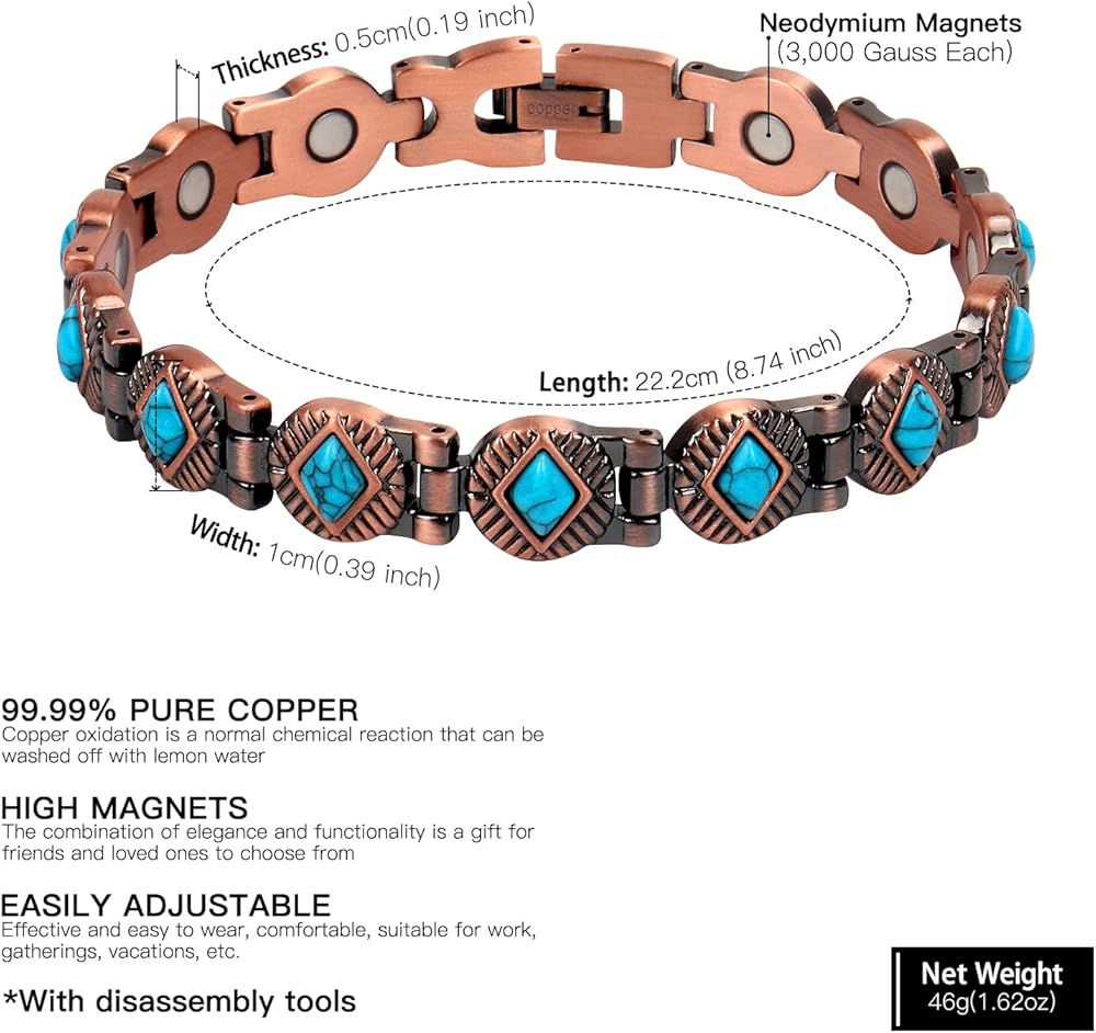 الفيروز النحاس النقي سوار للنساء شفاء العلاج المغناطيسي تخفيف آلام التهاب المفاصل النفق الرسغي سوار المرأة