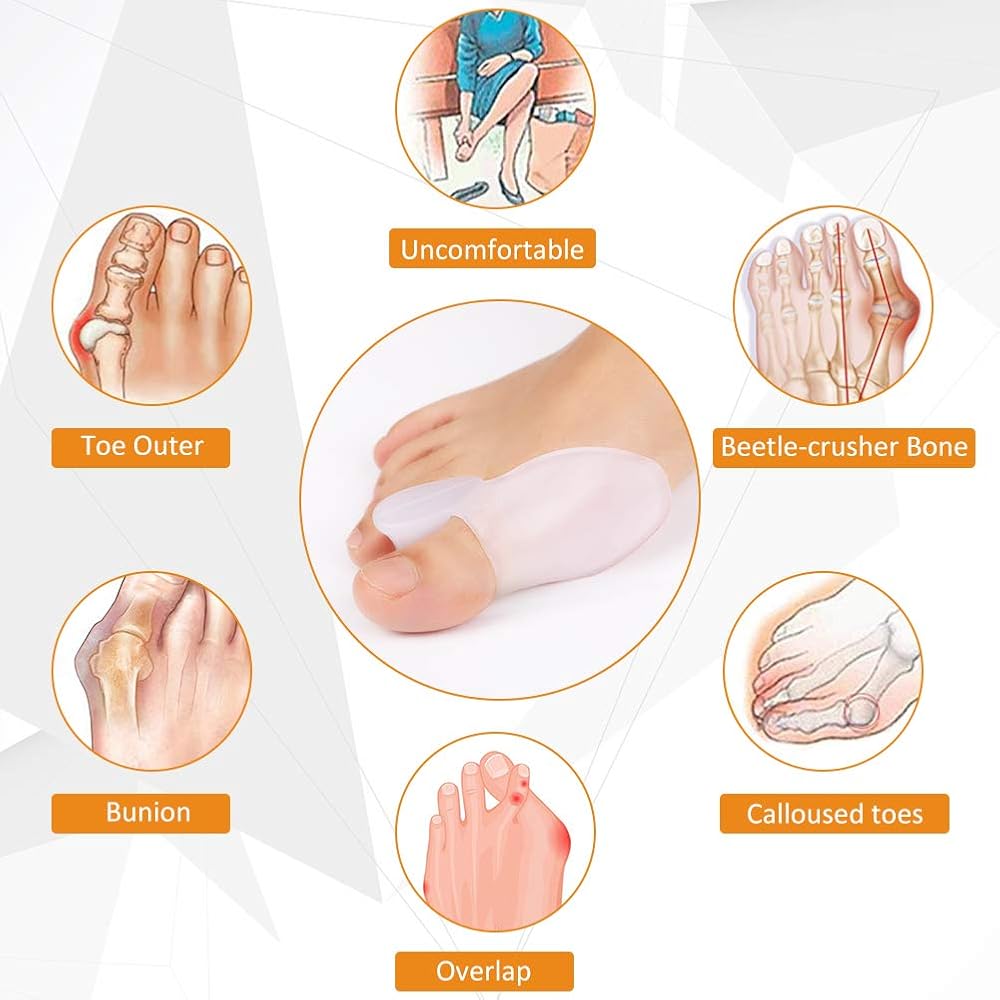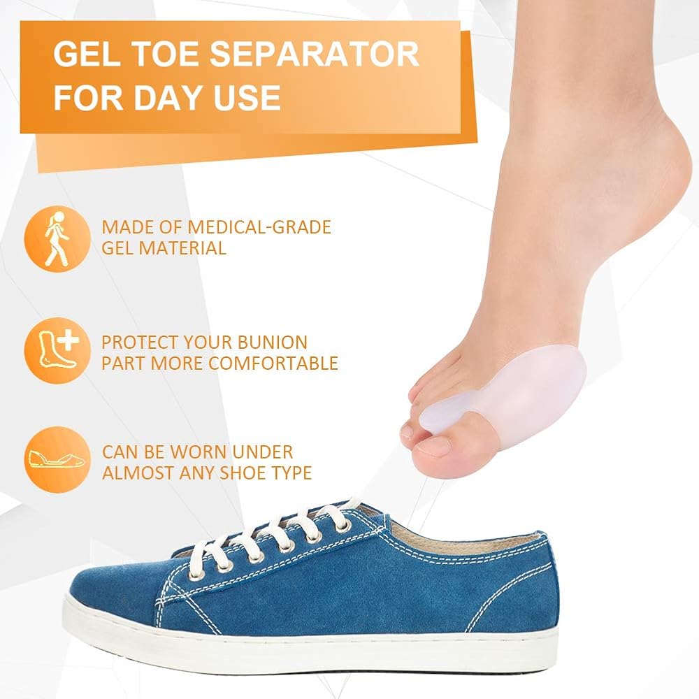 مجموعة جل لحماية ورم إصبع القدم الكبير للرجال والنساء، مصحح ورم إصبع القدم الكبير لعلاج إصبع القدم المطرقة، وأصابع القدم المتداخلة وأصابع القدم الملتوية، للاستخدام ليلاً ونهارًا للجري والنوم