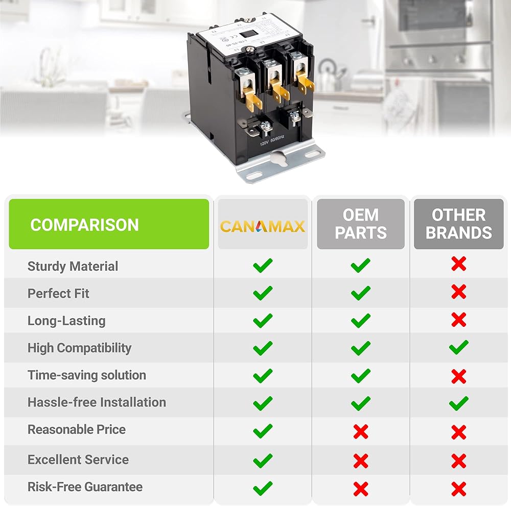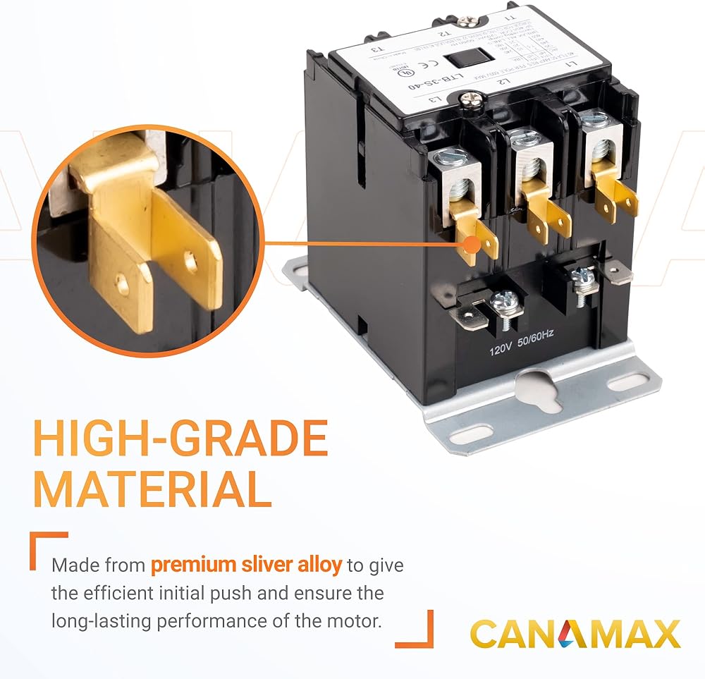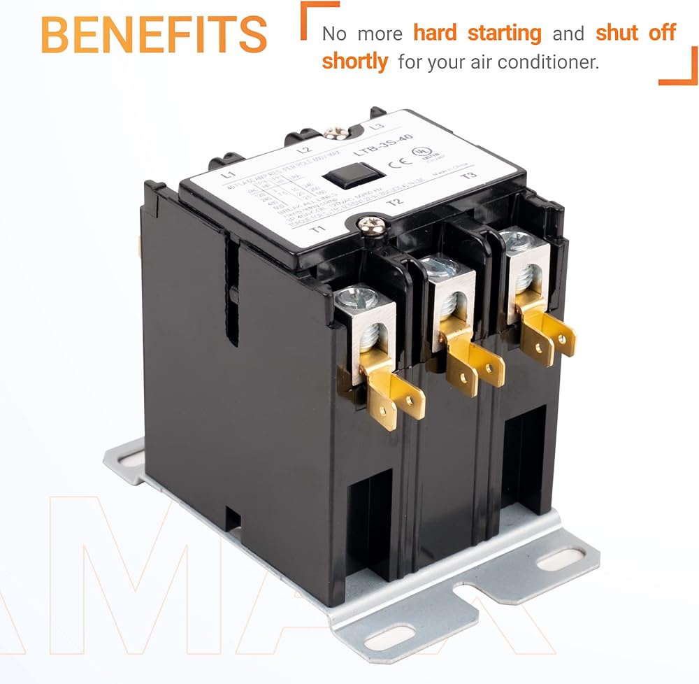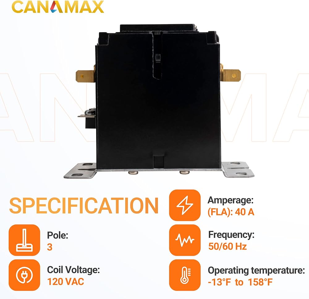 🔎 توافق عالي: موصل تيار متردد لمكثف ضاغط مكيف الهواء. يمكنه استبدال 3 موصلات أقطاب مصنفة بـ 20 أمبير، 25 أمبير، 30 أمبير، 35 أمبير، 40 أمبير (أقل من أو تساوي 40 أمبير) على مكيفات الهواء والمضخات الحرارية. 3 القطب. جهد الملف: 120VAC؛ التصنيف الحالي: 40 أمبير FLA؛ التردد: 50/60 هرتز؛ درجة حرارة التشغيل: -25 درجة مئوية - 70 درجة مئوية