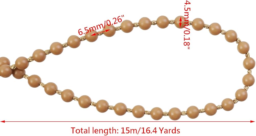 Size: Bead diameter: 4.5mm/0.18"; Total length: 15m/16.4 Yards; Two beads center distance: 6.5mm/0.26".