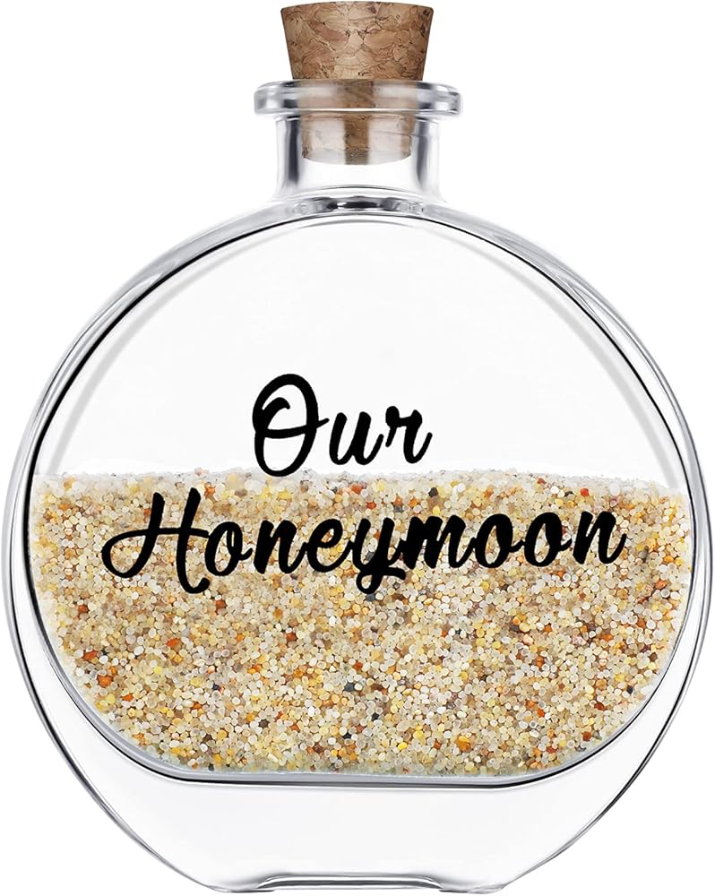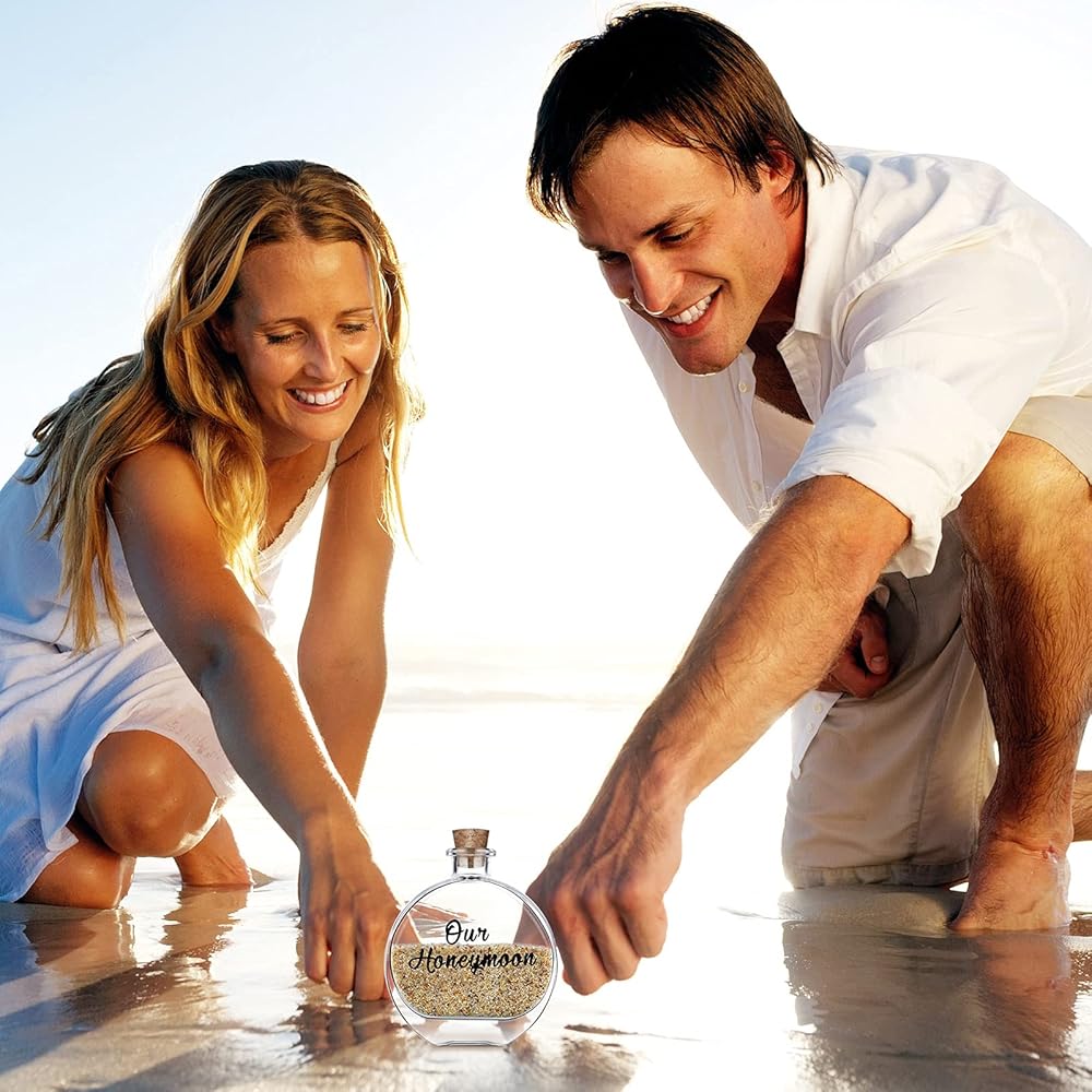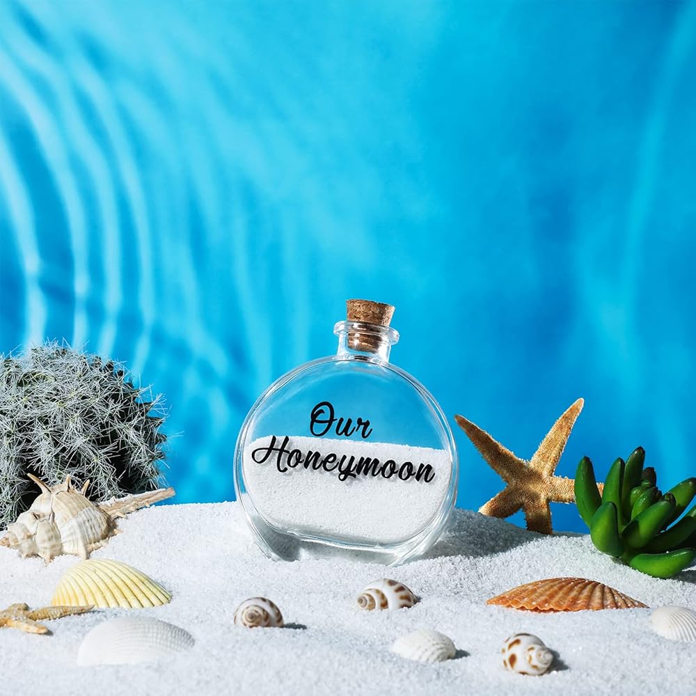 The sand keepsake glass bottle is like a transparent heart as a whole, which looks natural and clear. The words on the bottle are eye-catching, which can add a beautiful feeling to the glass bottle.