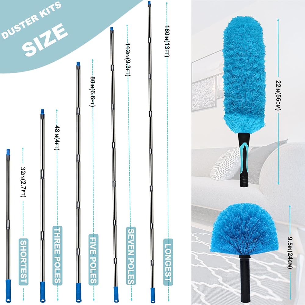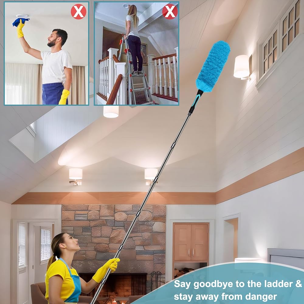 20+ Feet High Reach Duster Kit with 3-12 ft Extension Pole, Cobweb & Corner Brush Cleaning Duster for Cleaning, Microfiber Feather Duster Cleaner with Washable Head for Ceiling Fan, Furniture, Home