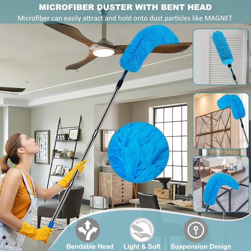 Microfiber duster with bent head - Microfiber can easily attract and hold onto dust particles like MAGNET,flexible duster head for flexible cleaning of hard-to-reach cornersit can be washable and reusable,economical and affordable