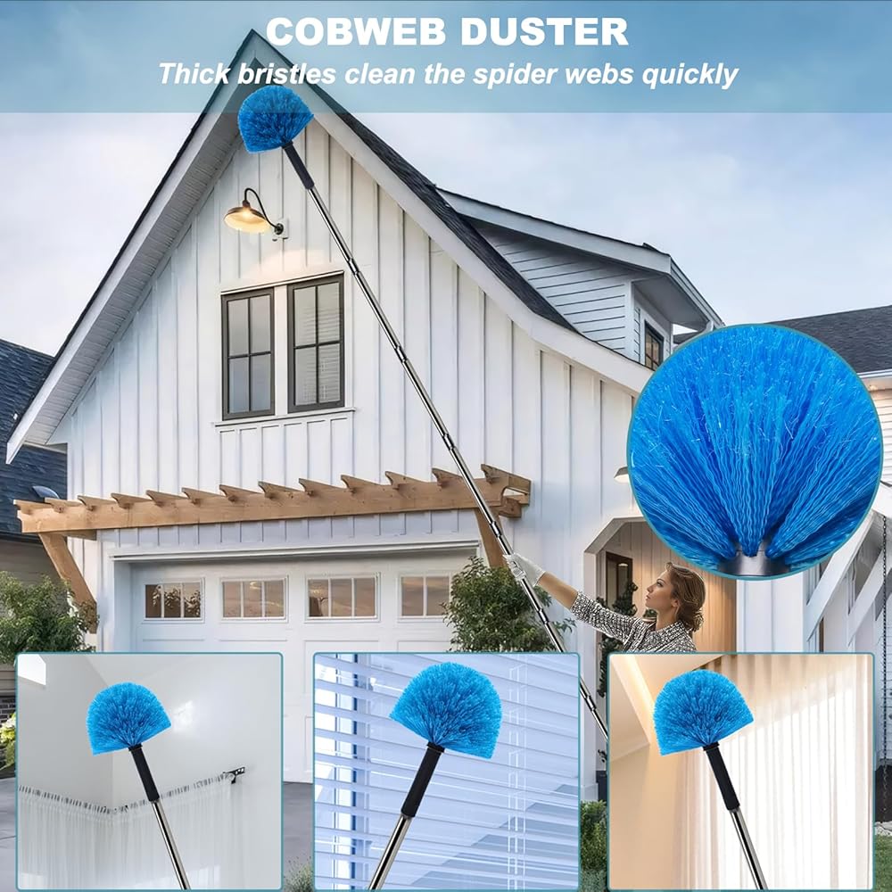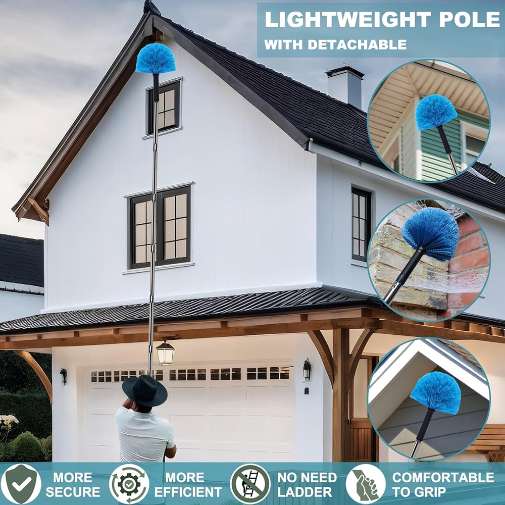 Say Goodbye to dust and cobwebs - This 12-feet(144-inches) ultra-thick stainless steel detachable poles and cobweb duster will give you up to 20 feet of reach, making all your hard-to-reach tasks super easy! Lightweight and sturdy, even the most vigorous cleaning solution while remaining easy to use,This spider web brush is perfect for removing cobwebs, dust and stain from eaves, porches, walls, Air conditioning, TV, bookcase, tabletop, sofa, chandelier, blind
