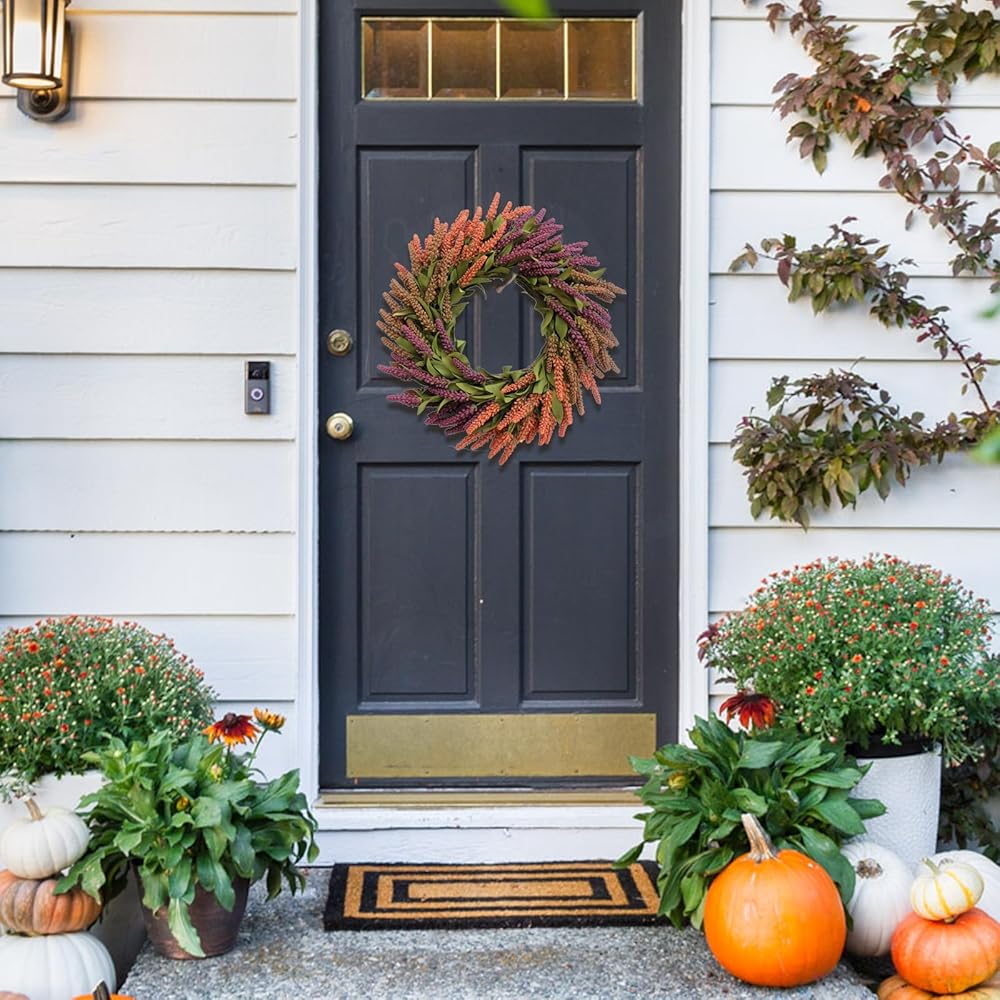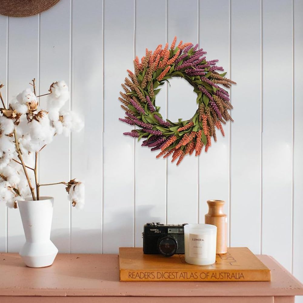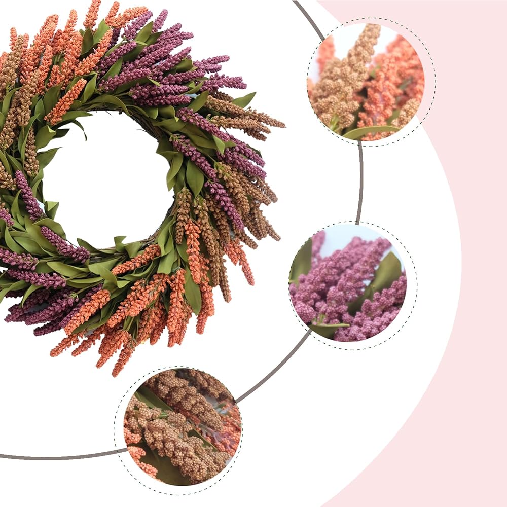 • 【Unique Design】The wreath has been designed with both beauty and practicality in mind. The grain wreath designed with 3 colors, make for a blend of colors to warm up your room, add a strong autumn atmosphere.