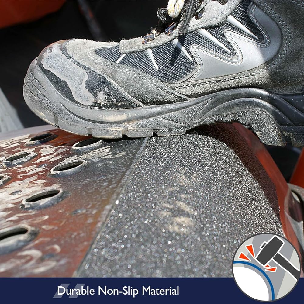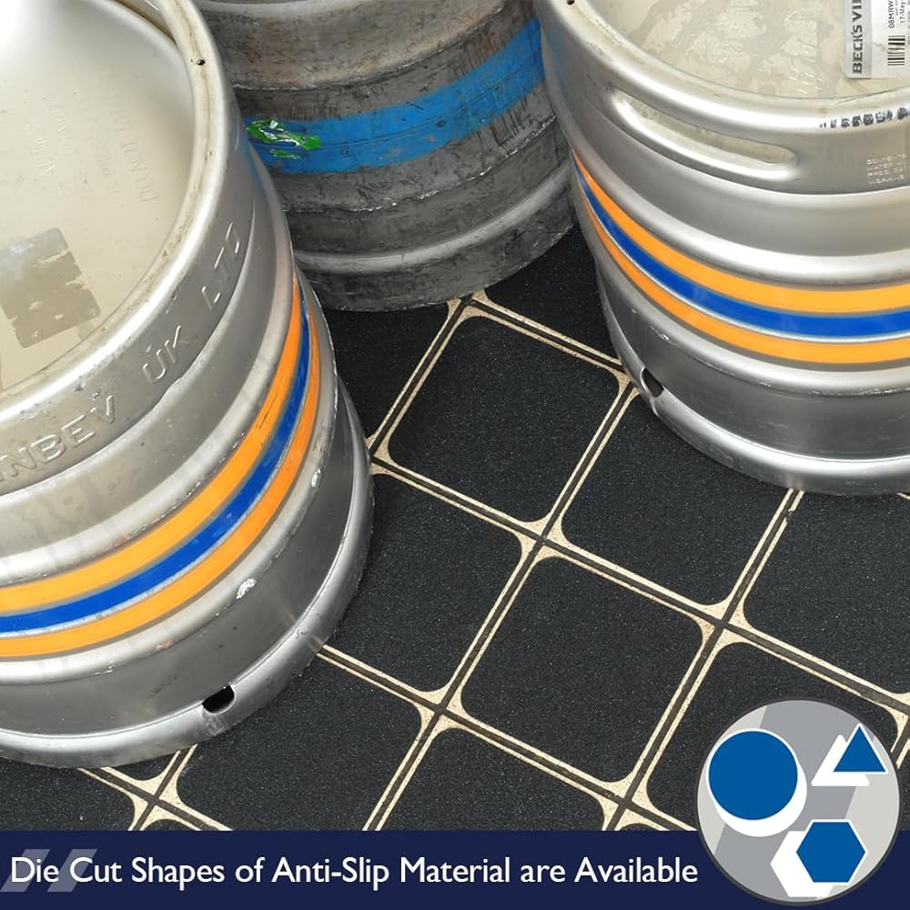 Black standard anti slip tape is our most popular material, it is ideal for any general non slip requirement. The material has a permanent self adhesive, plastic base and is coated with extremely tough, diamond hard aluminium oxide. The anti slip capability (coefficient of friction) exceeds all legal requirements. The product is perfect to prevent slips and trips on stair nosings, internal walkways and external areas. For muddy or industrial applications I would recommend our coarse anti slip tape product which has a deeper grit. A wide variety of popular shapes available.