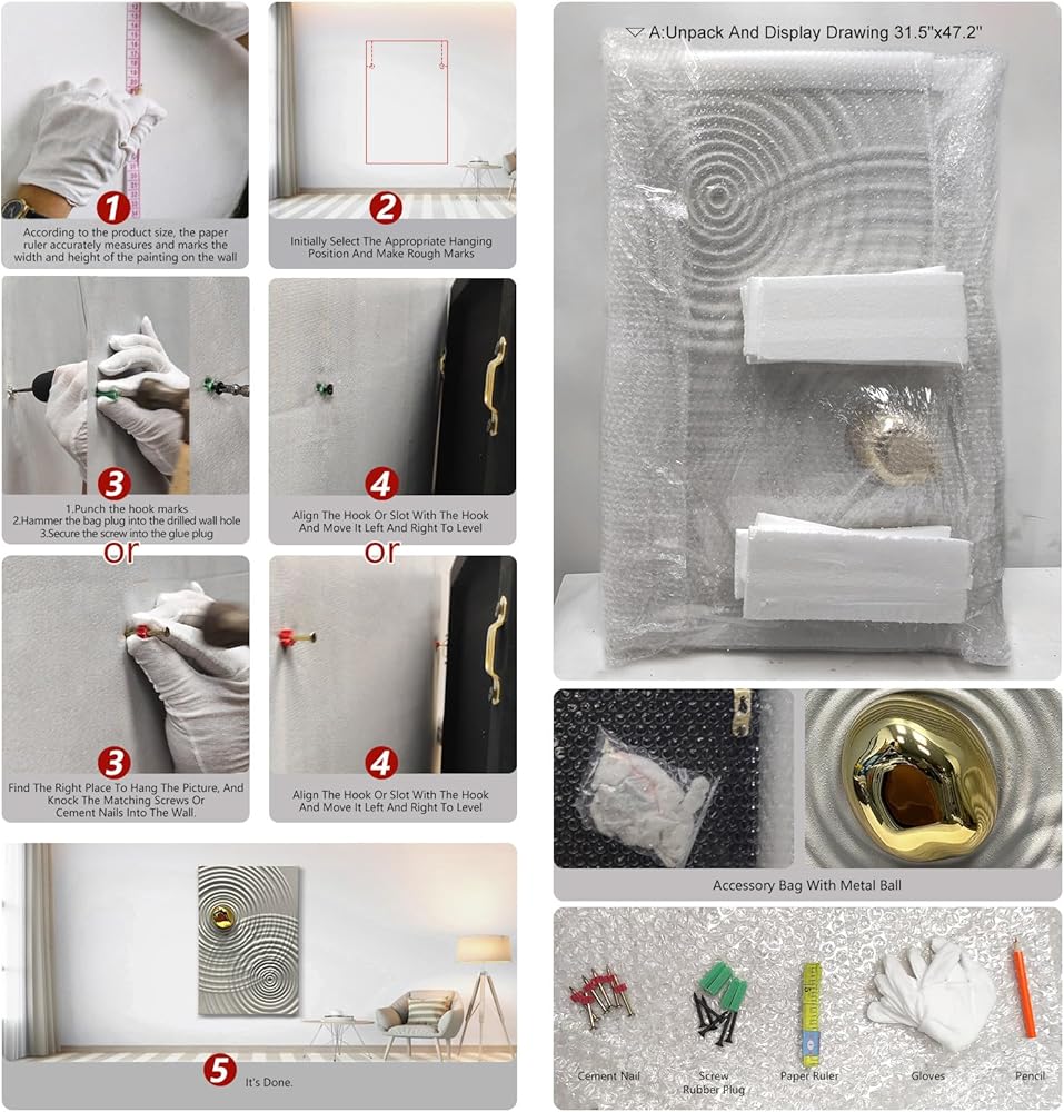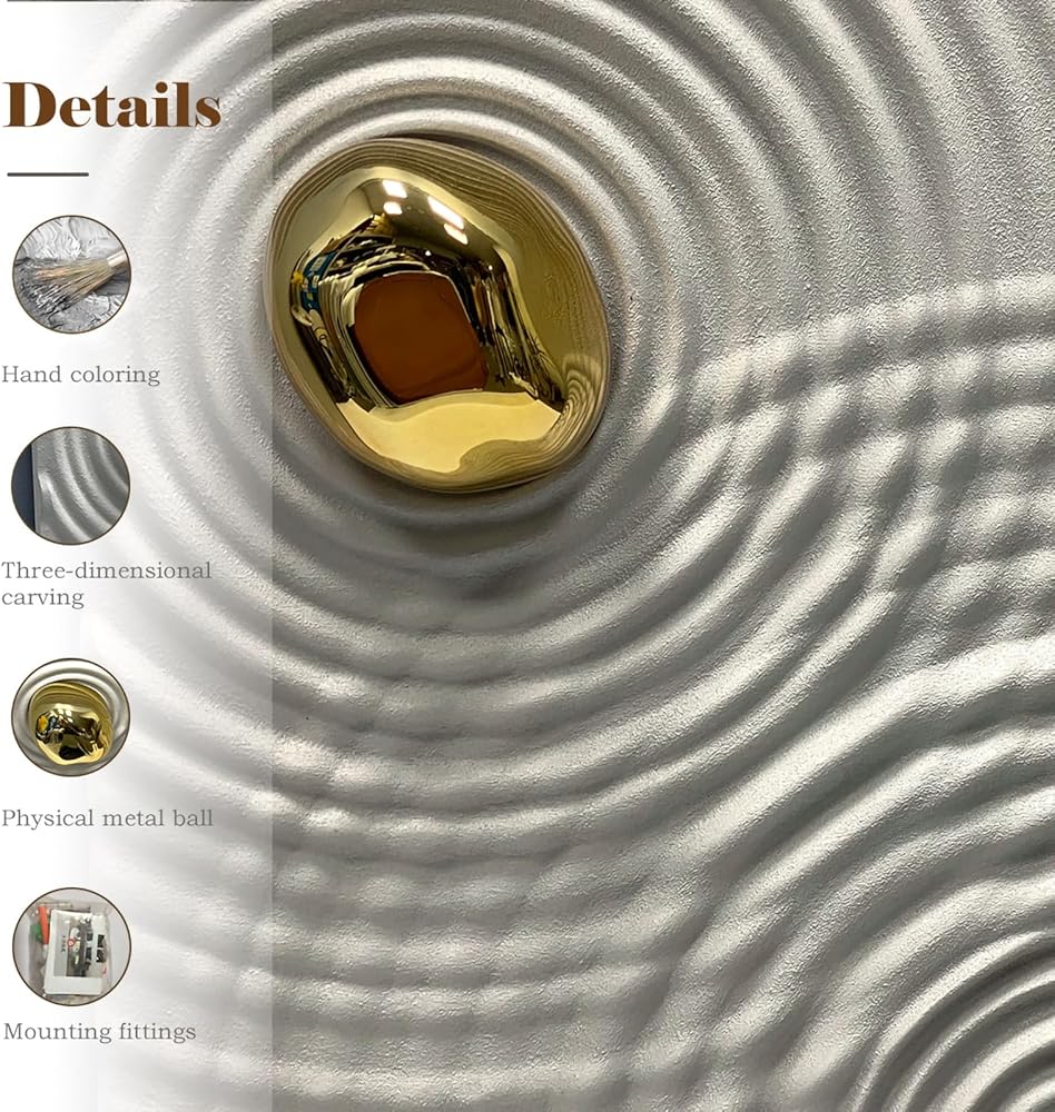 【بطانة كروية معدنية ذهبية】- كرة معدنية ذهبية مدمجة في وسط الأمواج، مما يضيف لمسة عصرية ونقطة محورية بصرية تعزز التفرد العام للتصميم.