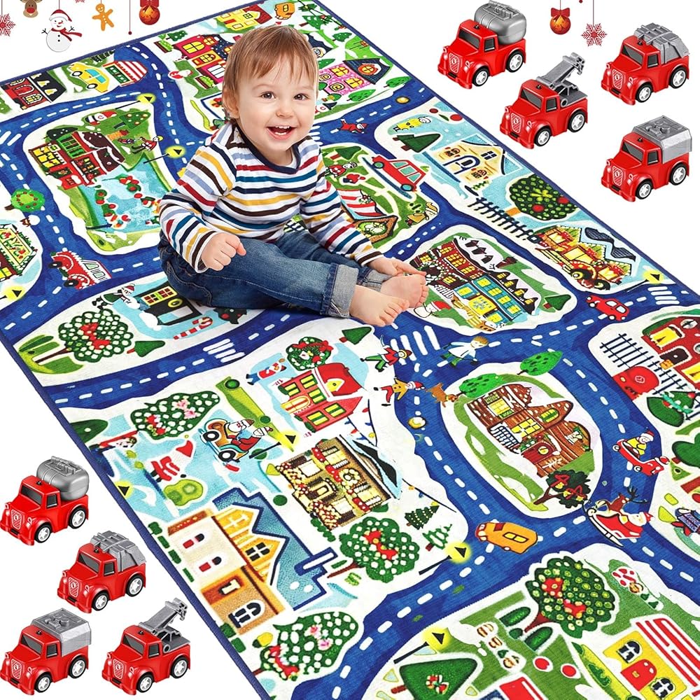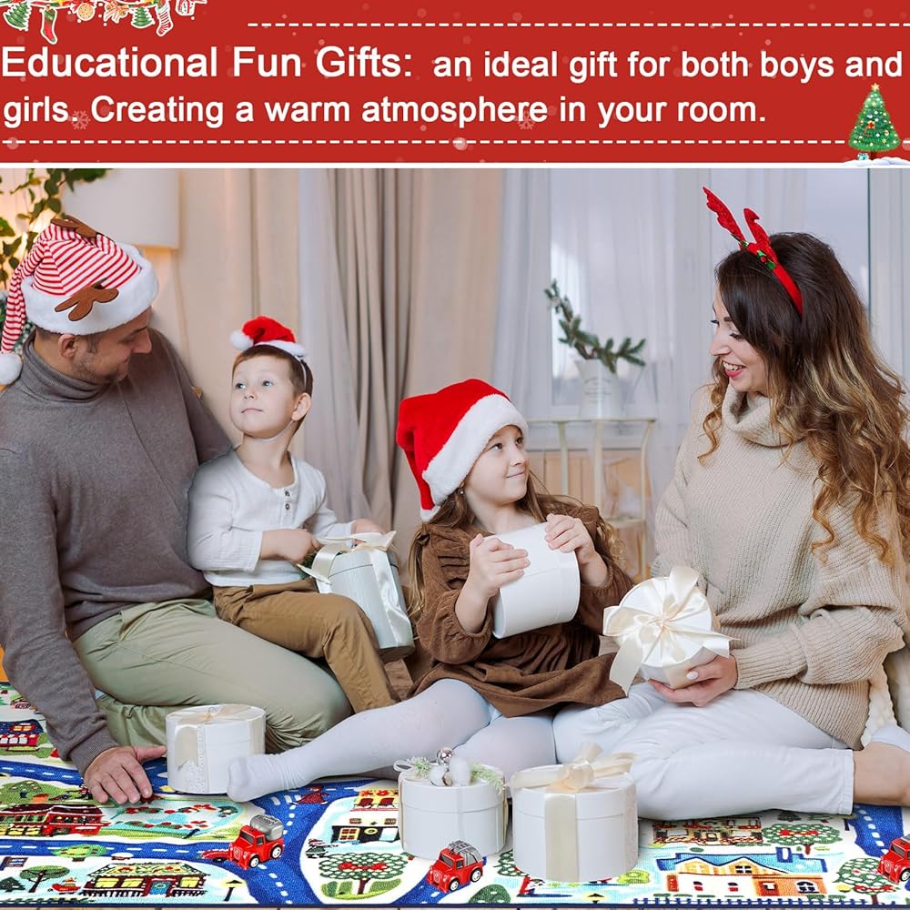 • Educational Fun Gifts: an ideal gift for both boys and girls for the holidays, classroom rewards, learning activities, baptism, birthdays, etc. It's not just a toy cars play mat but also a festive room decor piece, creating a warm atmosphere in your child's room