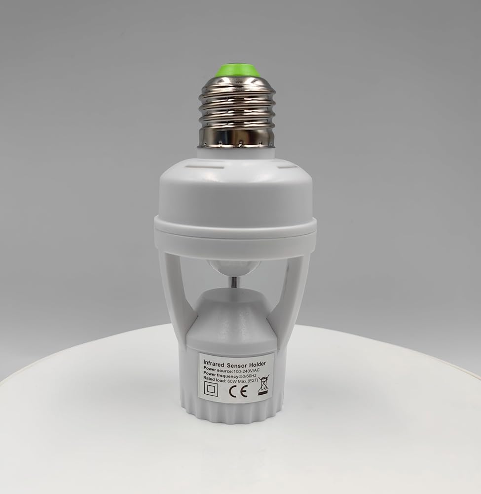 مقبس إضاءة مستشعر الحركة بالأشعة تحت الحمراء - محول لولبي E26/E27 للتحكم التلقائي في الإضاءة، سهل التركيب ومدة قابلة للتعديل - مثالي لمصباح المرآب الداخلي الخارجي، للطابق السفلي