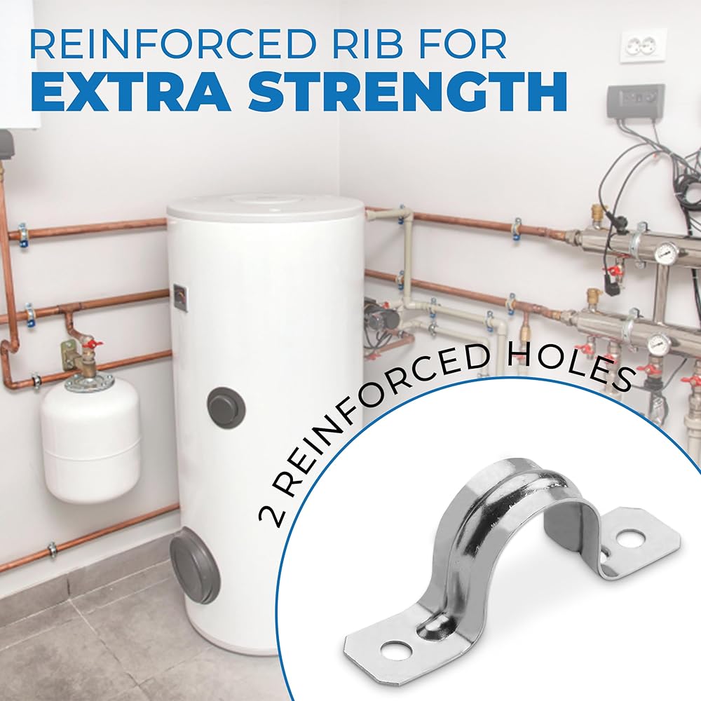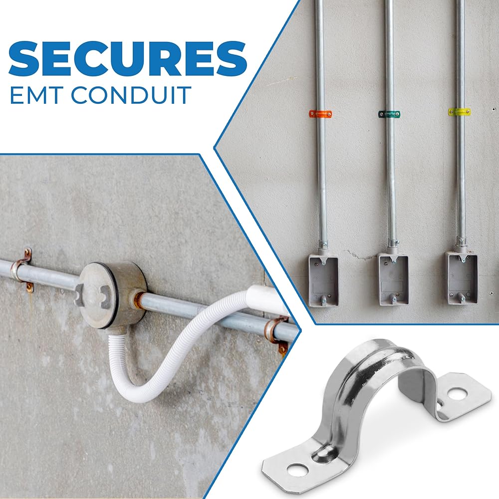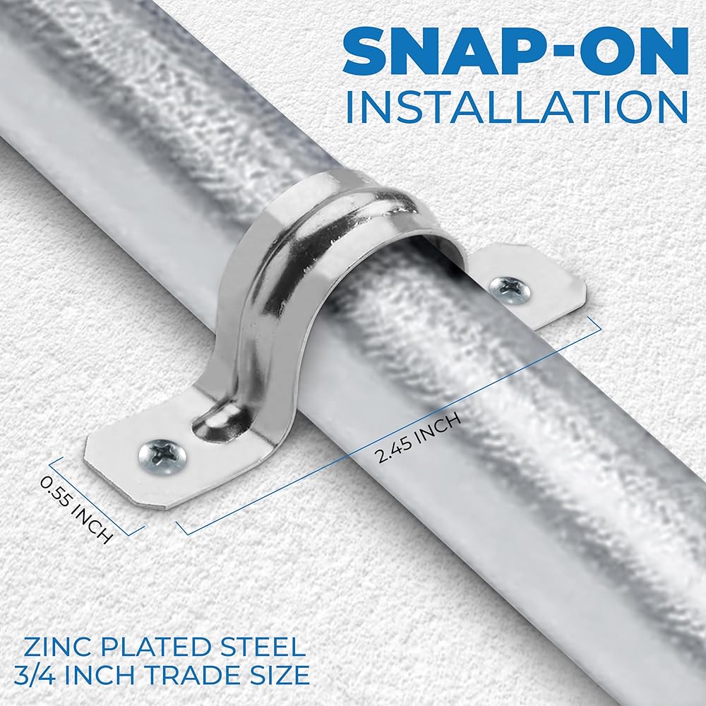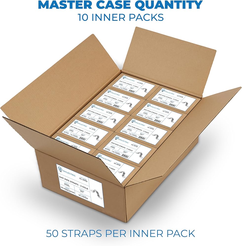 حزام أنبوب OhLectric بفتحتين 3/4 بوصة - ضلع مقوى لمزيد من القوة - مشبك حزام أنابيب فولاذي مطلي بالزنك لقناة EMT - تركيب سهل التركيب - عبوة من 10 قطع؛ OL-72853 -500 قطعة