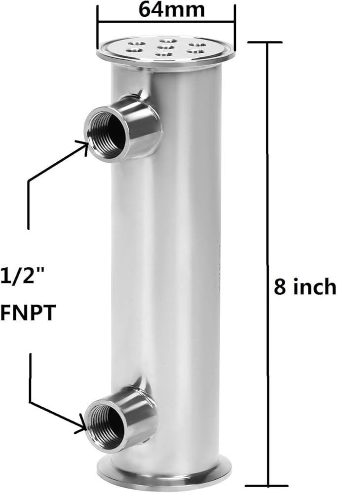 DERNORD Tri Clamp condensers function as heat exchangers. Coolant enters via an FNPT port circulating & cooling the metal tubing through which your vapor or solvent passes vertically. The gas condenses into a liquid and runs back down under the influence of gravity where it is reclaimed and placed back into a collection tank. DERNORD tri clamp condensers disperse coolant throughout the interior of the spool offering higher heat exchange efficiency. In the distilling industry these condensers are generally called dephlegmator or reflux condensers.